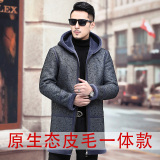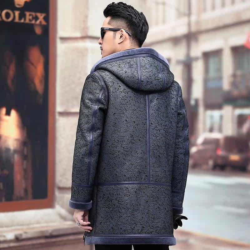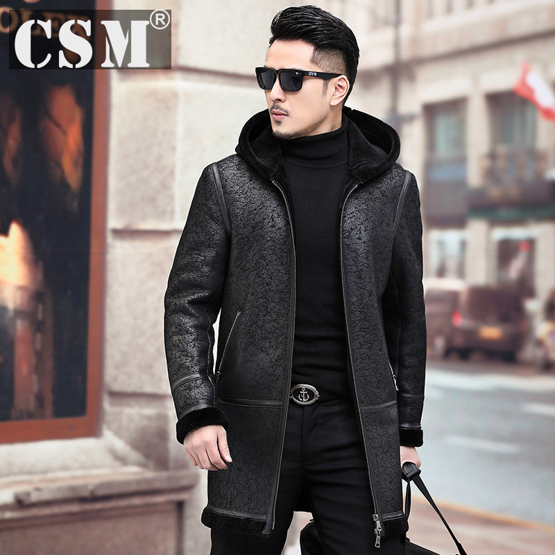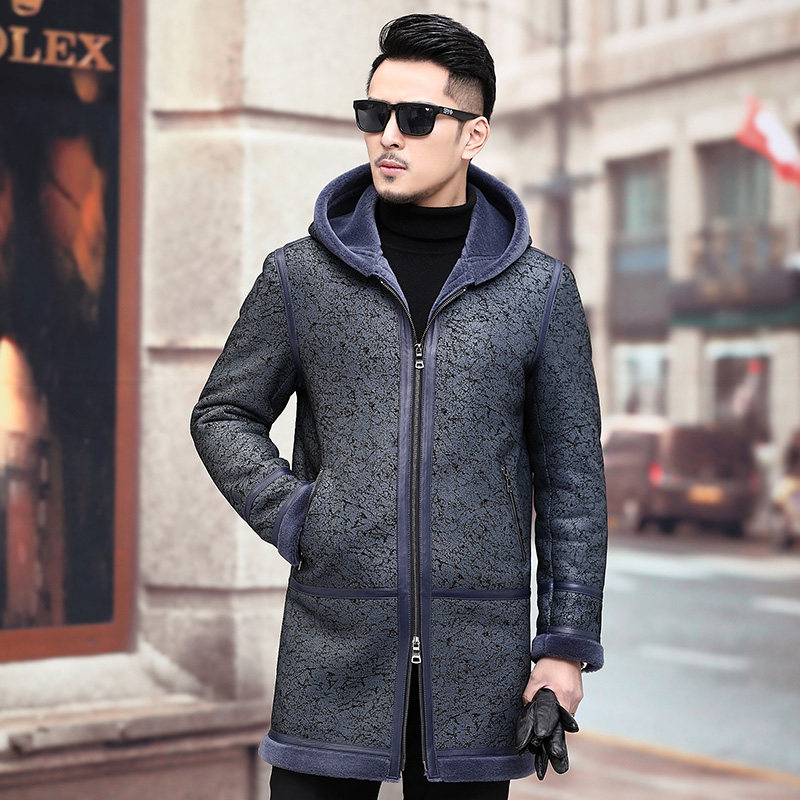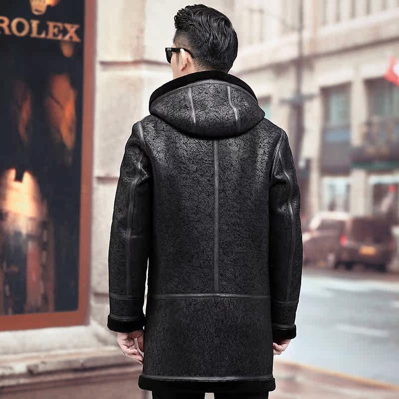 Мужская длинная толстовка с капюшоном, шапка, куртка, из натуральной кожи, средней длины