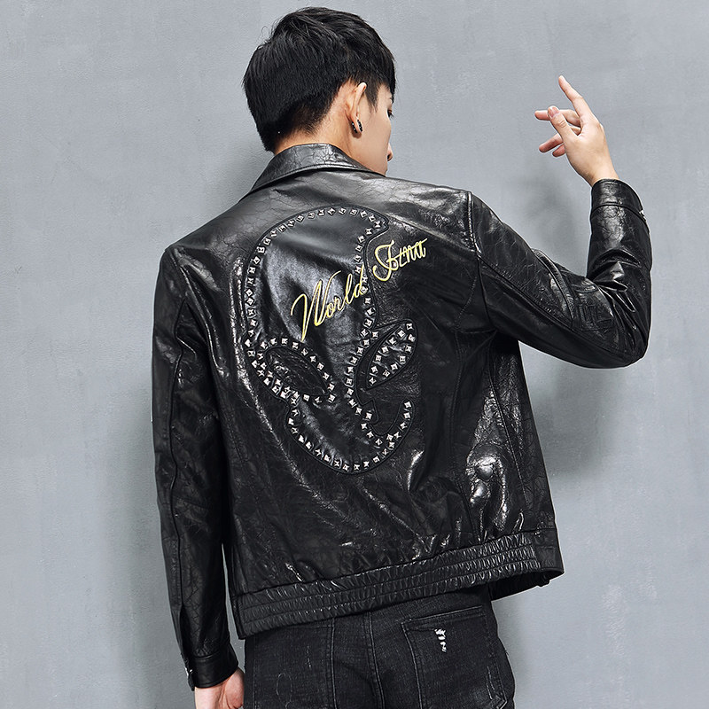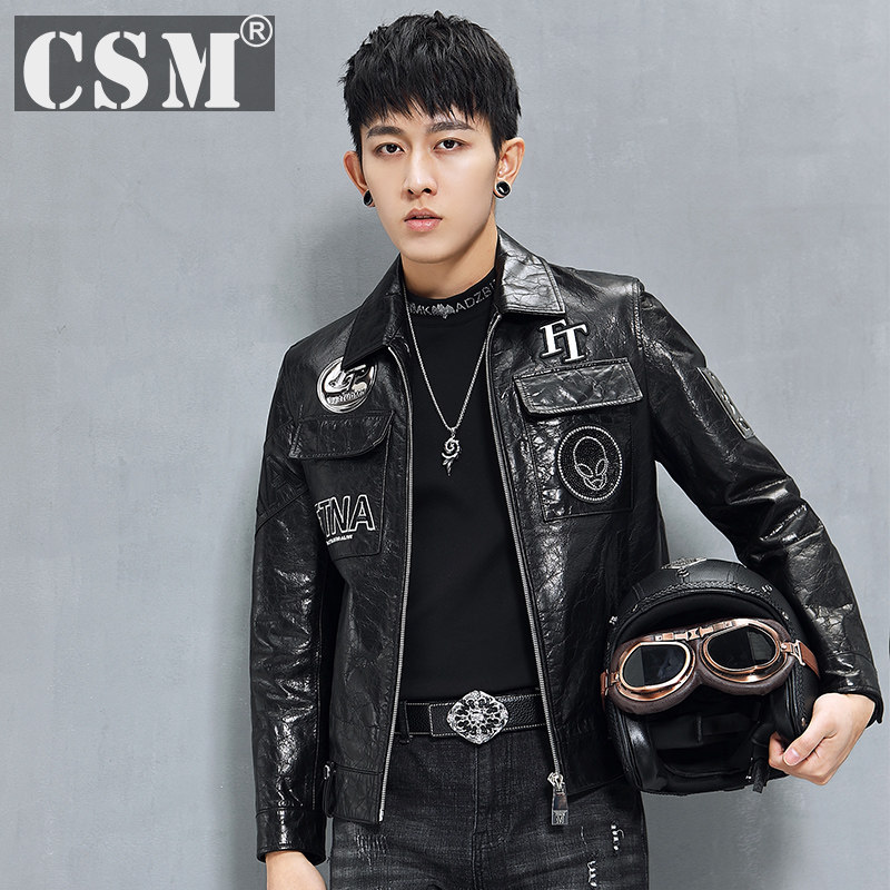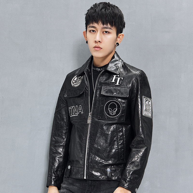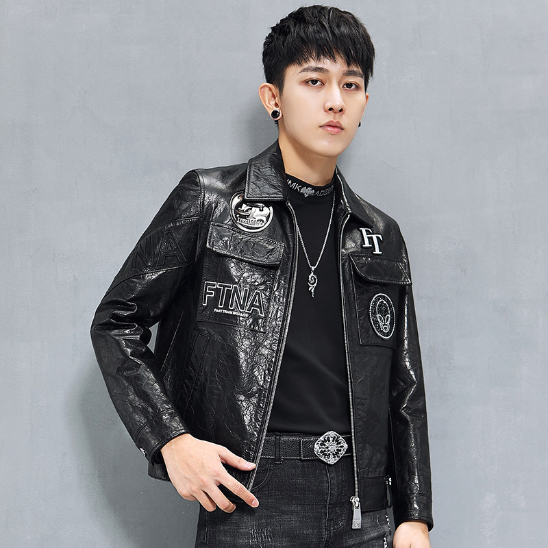Кожаная короткая куртка, воловья кожа, из натуральной кожи