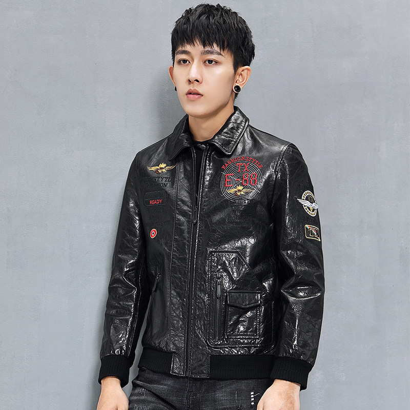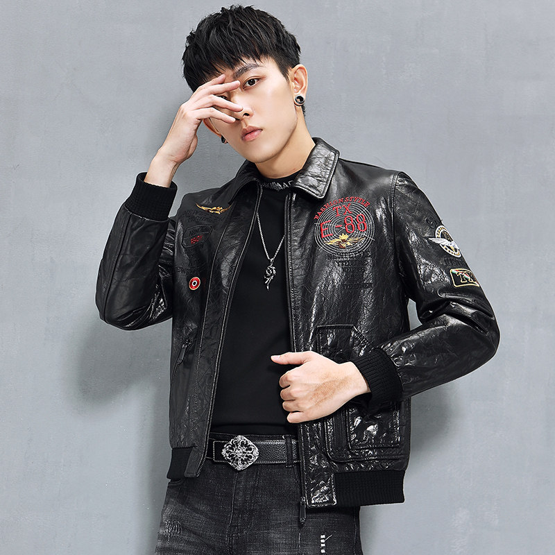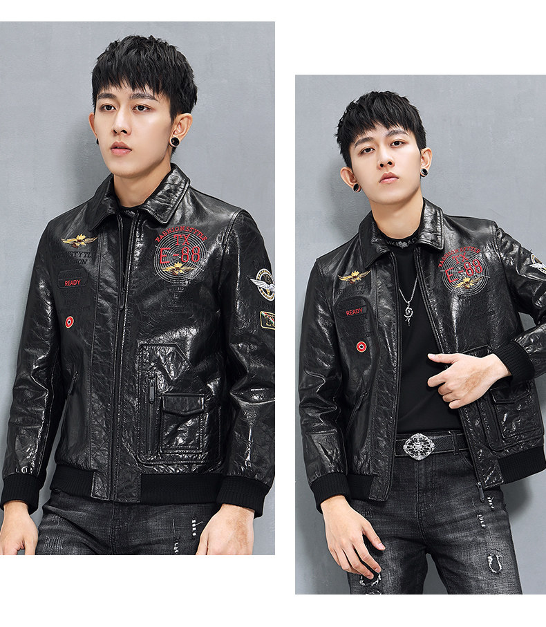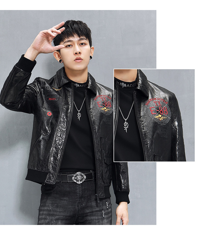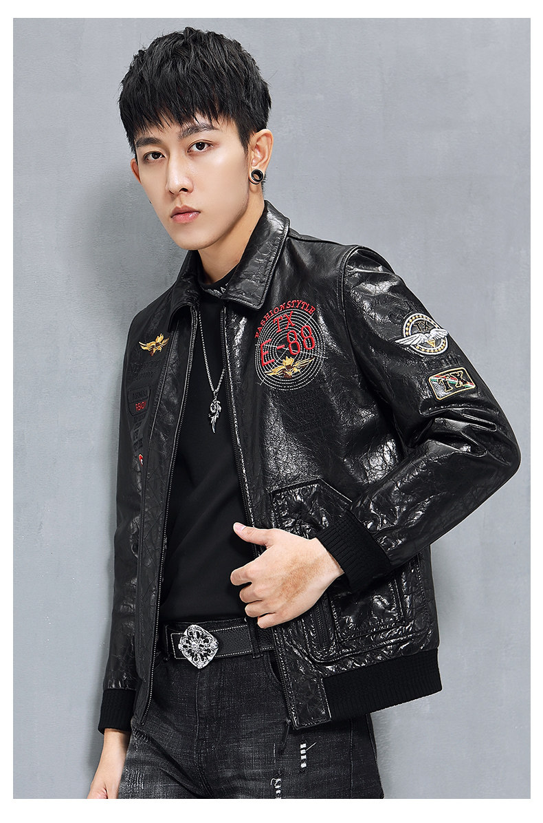 Кожаная короткая трендовая куртка, воловья кожа, из натуральной кожи, с вышивкой