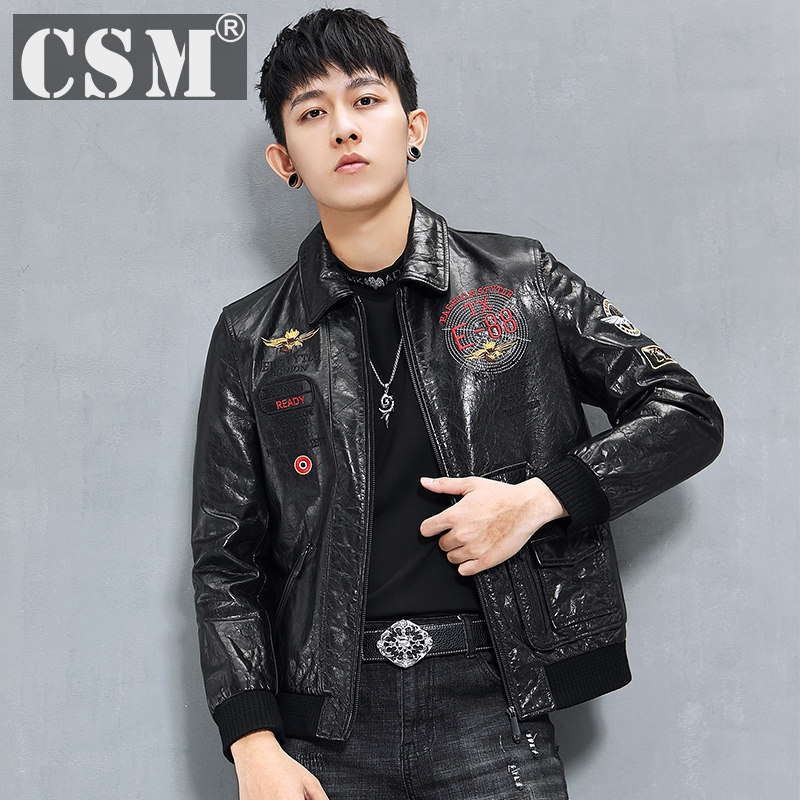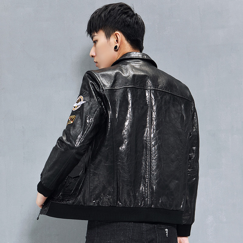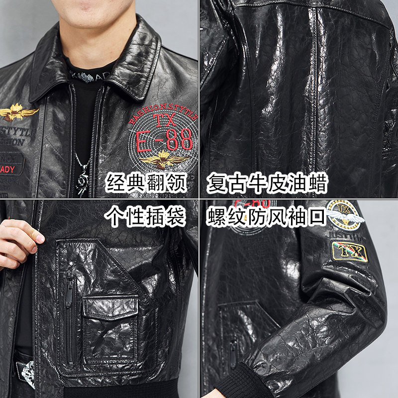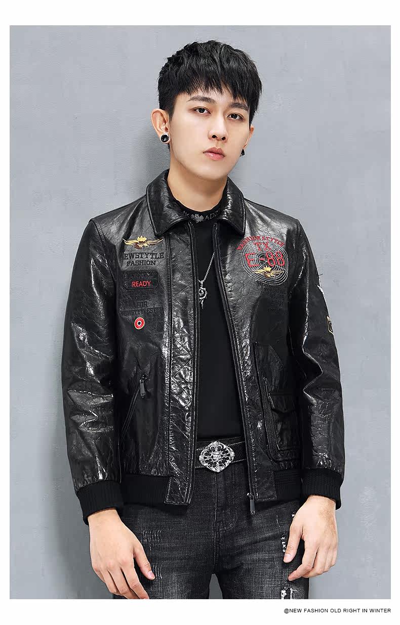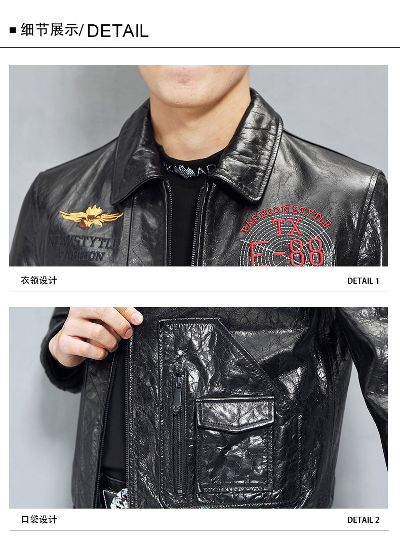 Кожаная короткая трендовая куртка, воловья кожа, из натуральной кожи, с вышивкой