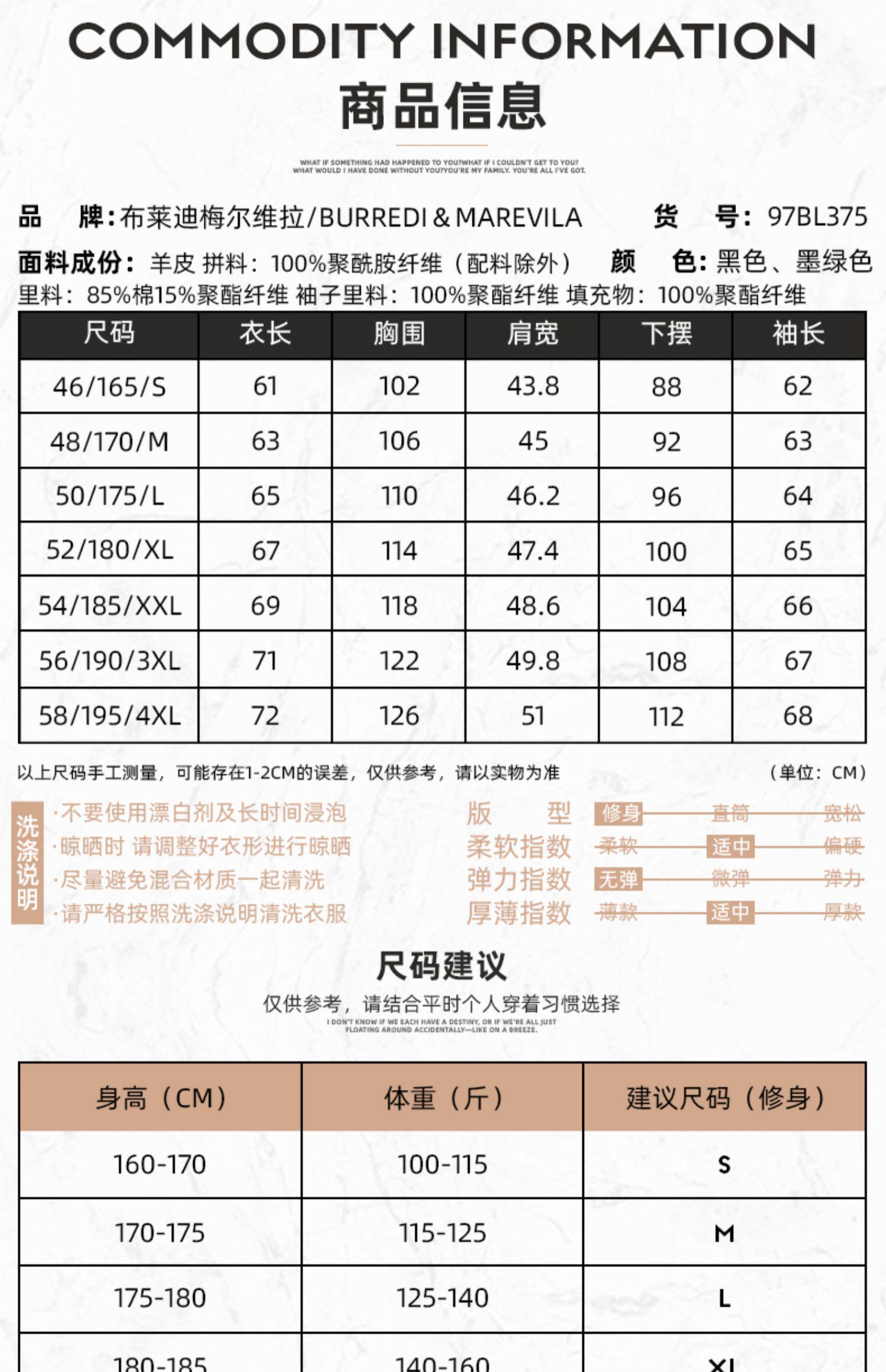 | Размер: | 46/S/165, 48/M/170, 50/L/175, 52/XL/180, 54/XXL/185, 56/XXXL/190, 58/XXXXL/195, Пожалуйста, проконсультируйтесь с обслуживанием клиентов для точного кода |