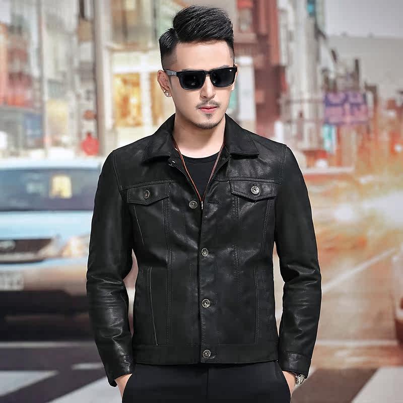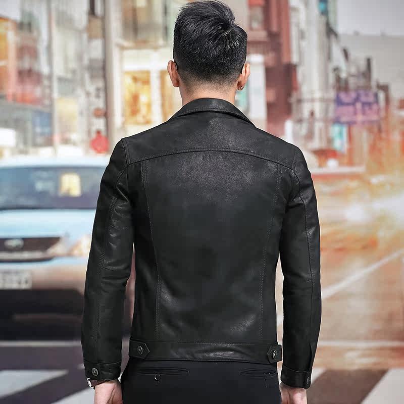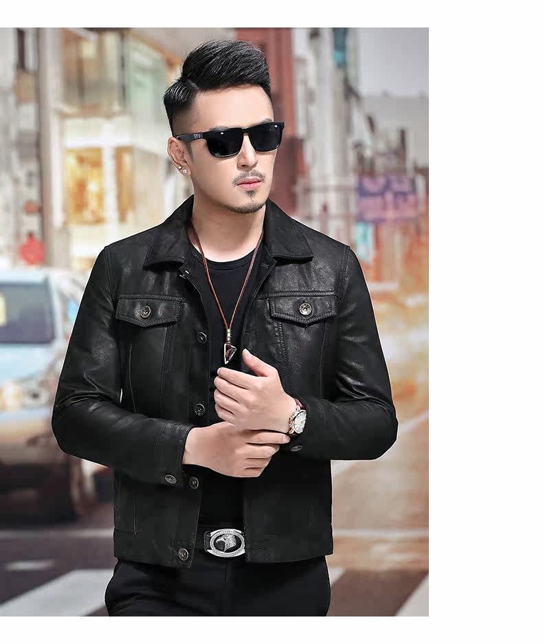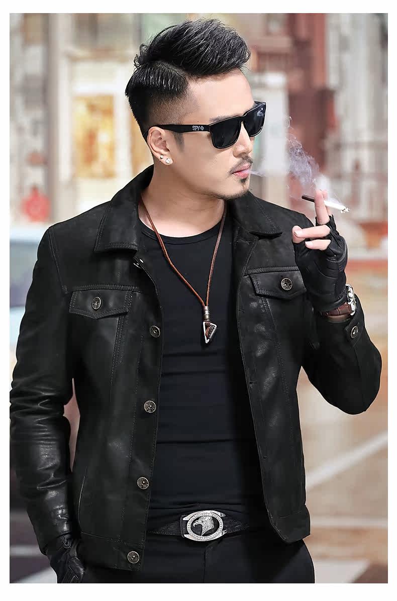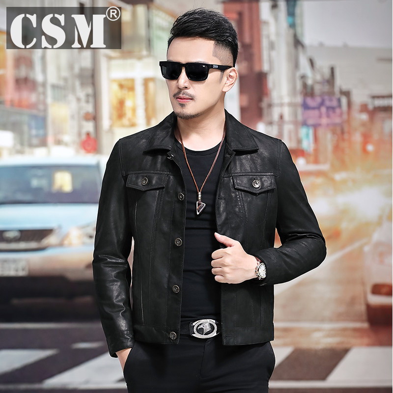 Японская ретро джинсовая куртка, из натуральной кожи, облегающий крой, в корейском стиле