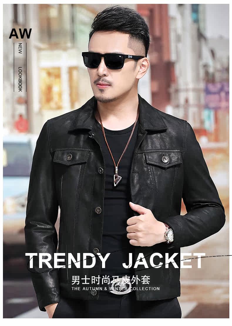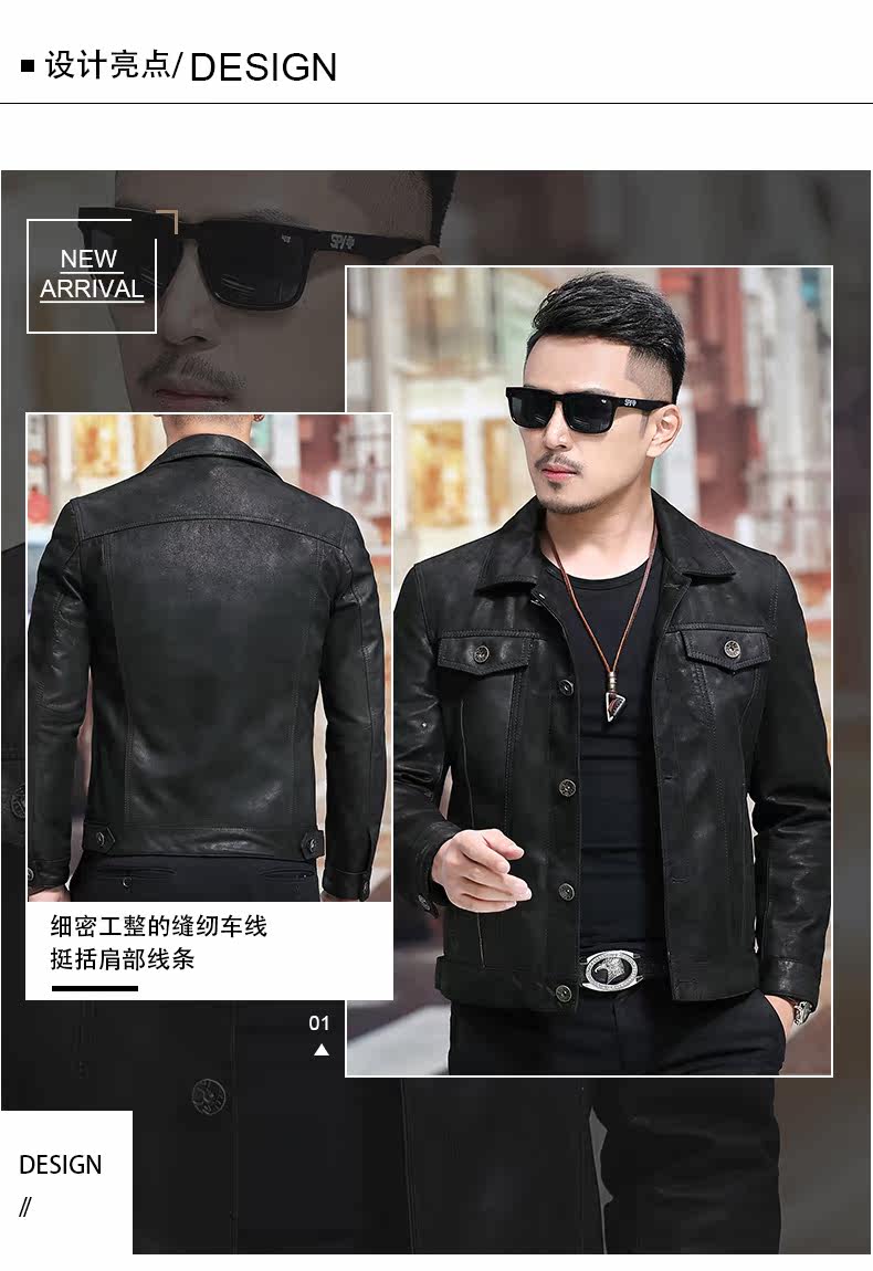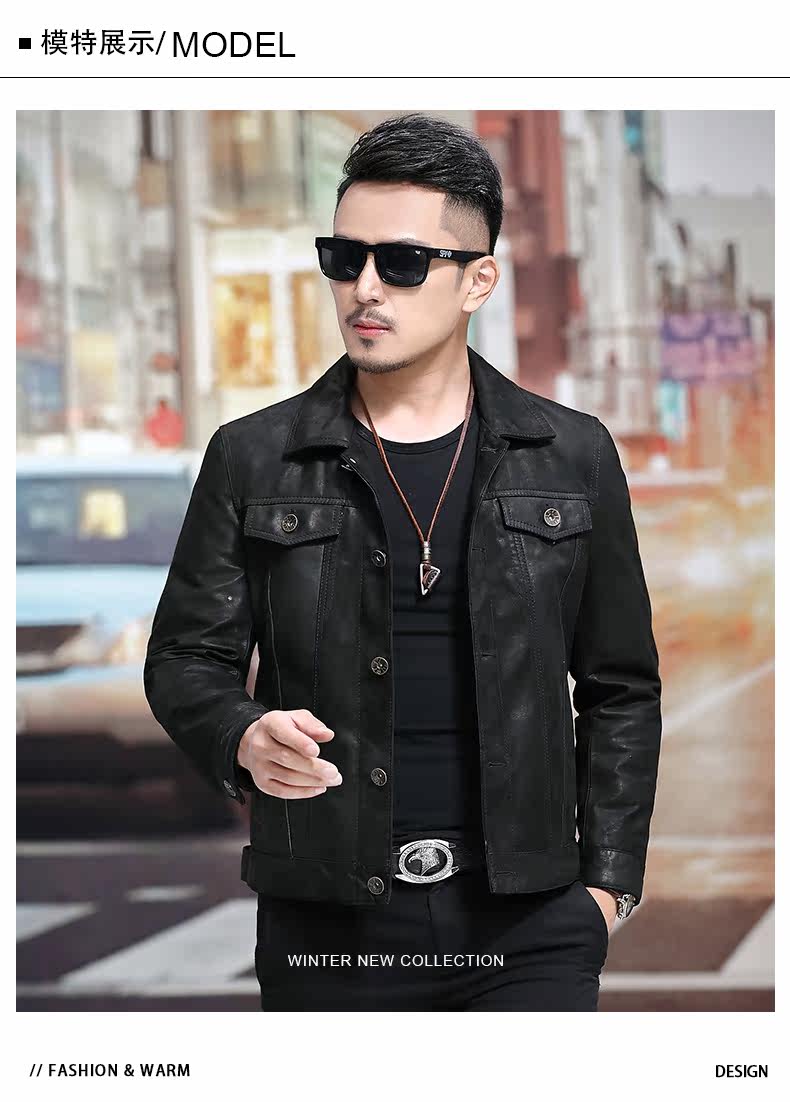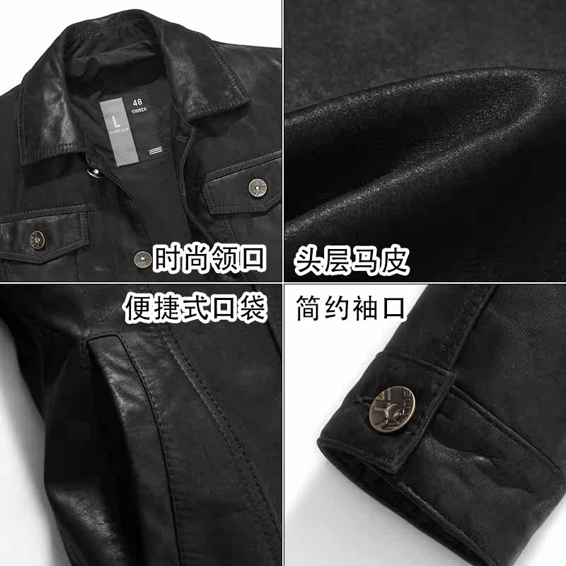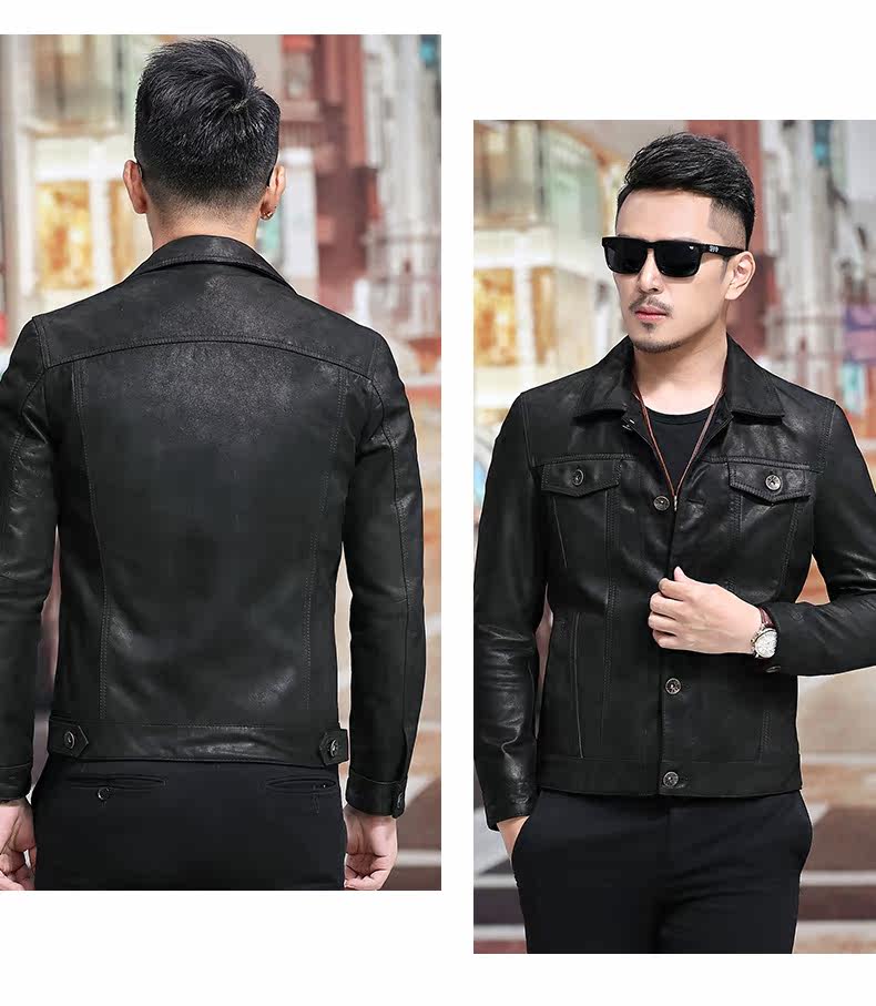 Японская ретро джинсовая куртка, из натуральной кожи, облегающий крой, в корейском стиле