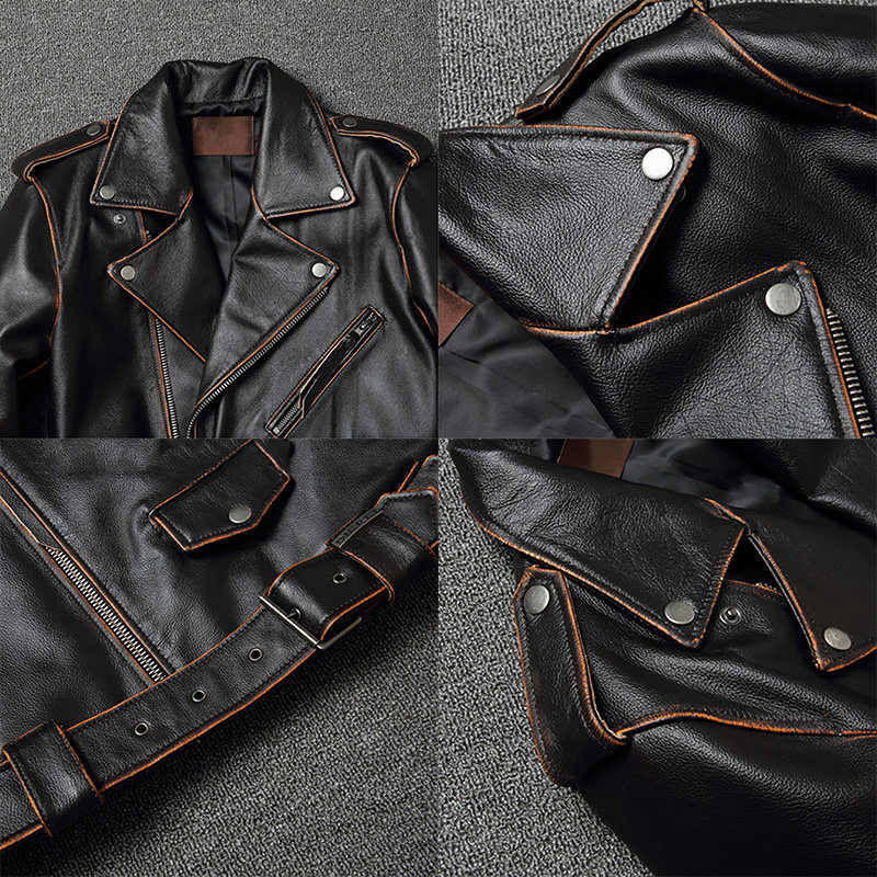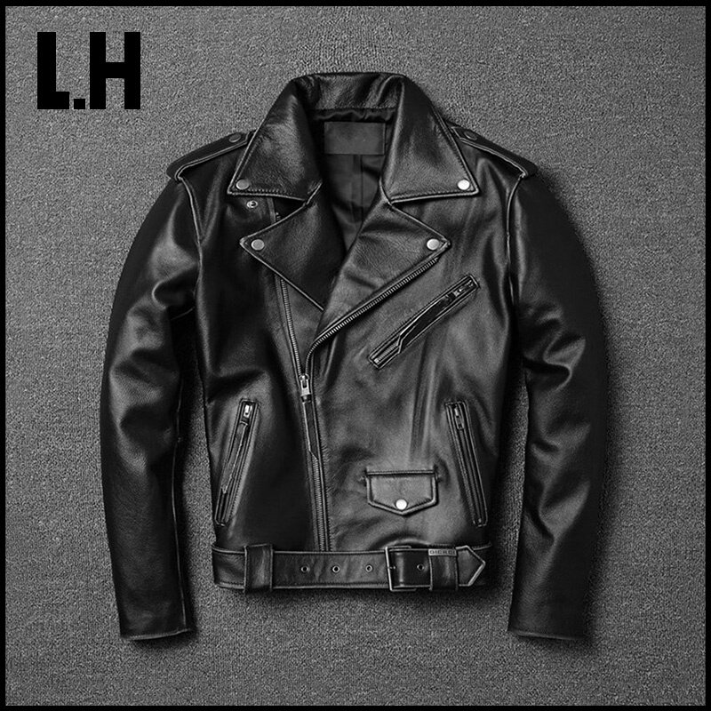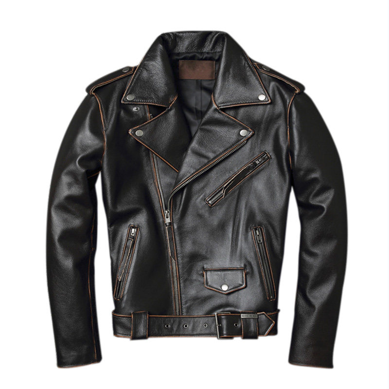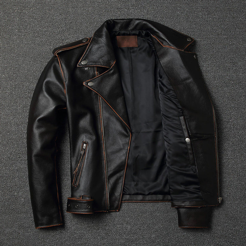 Ретро кожаная куртка для отдыха, из натуральной кожи, воловья кожа, большой размер