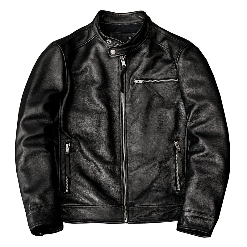 Кожаная демисезонная куртка, из натуральной кожи, облегающий крой