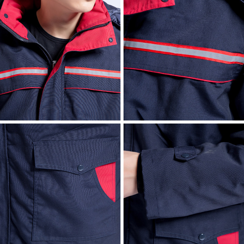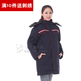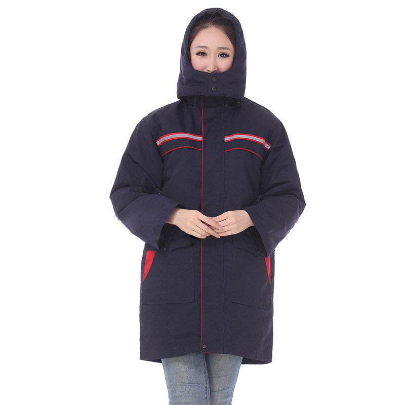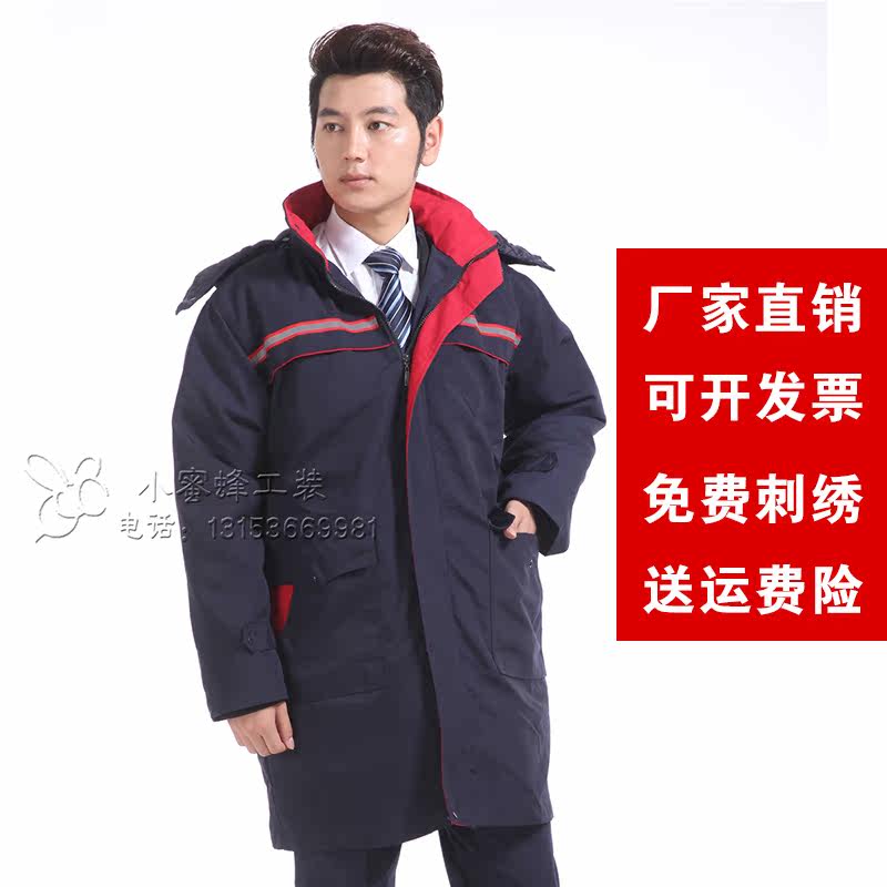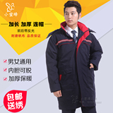 Длинная зимняя куртка для работы, светоотражающий пуховик с капюшоном подходит для мужчин и женщин, увеличенная толщина, средней длины
