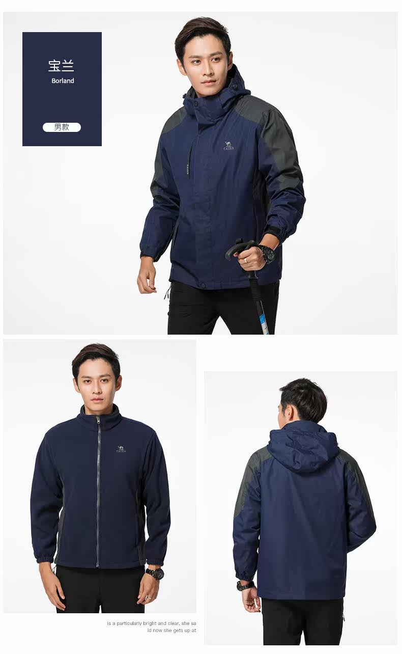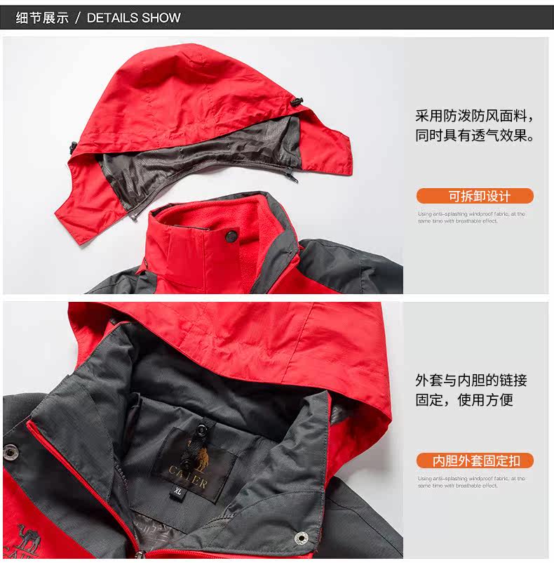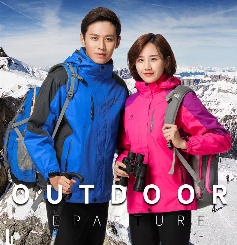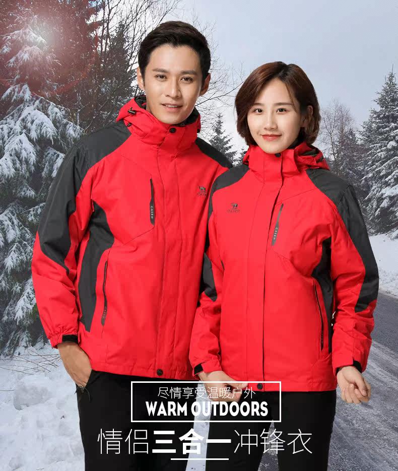 Демисезонный дорожный утепленный съемный ветрозащитный лыжный комплект для влюбленных, куртка, «три в одном»