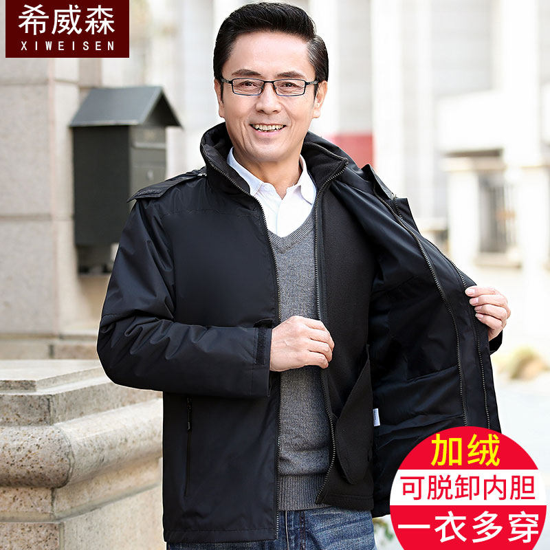 Куртка, бархатный флисовый вкладыш, хлопковый пуховик, увеличенная толщина, для мужчины среднего возраста