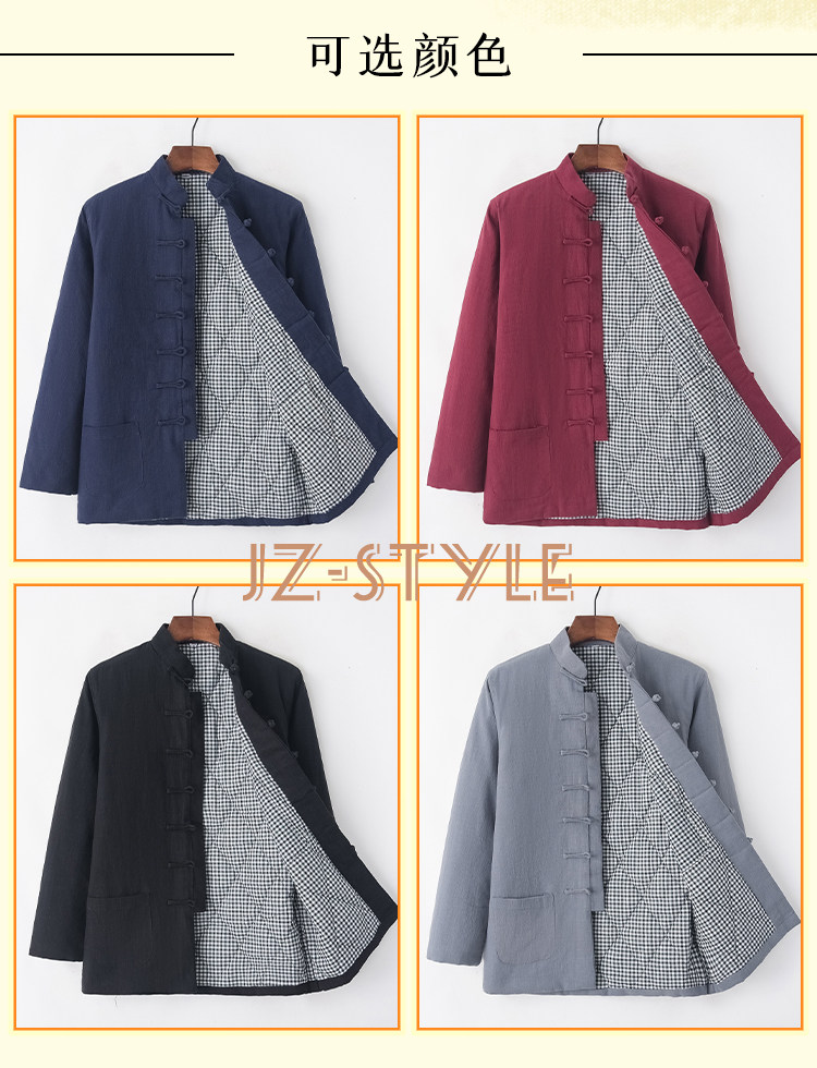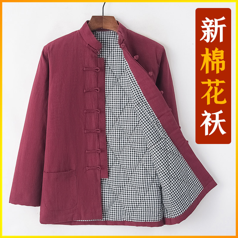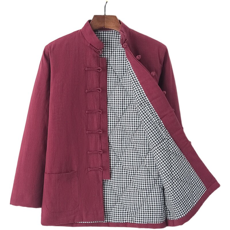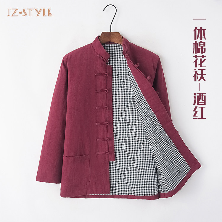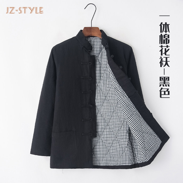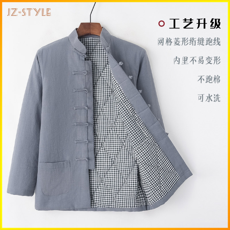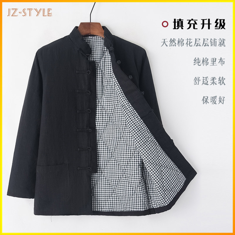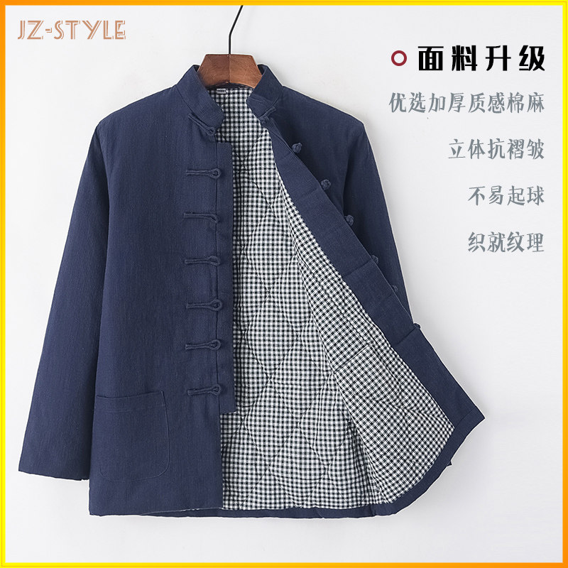 Демисезонная утепленная хлопковая куртка, пуховик, китайский стиль, из хлопка и льна