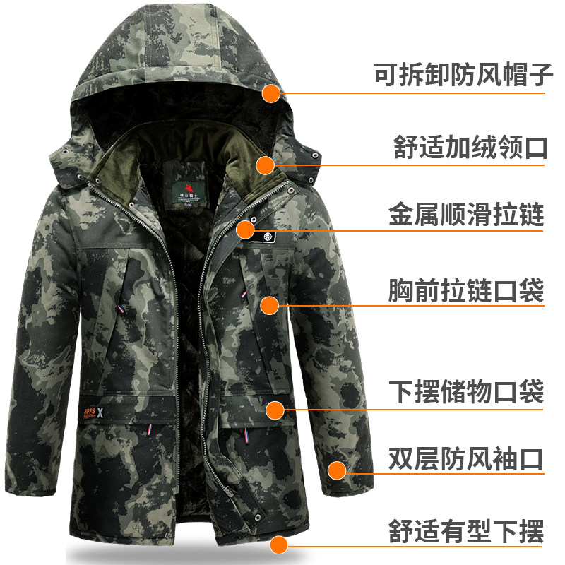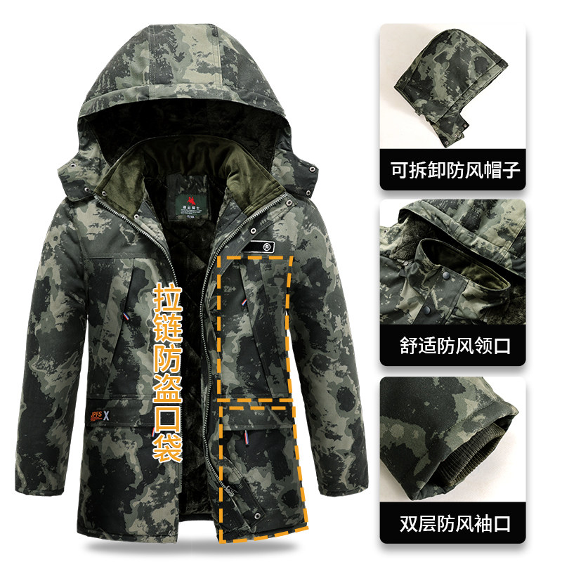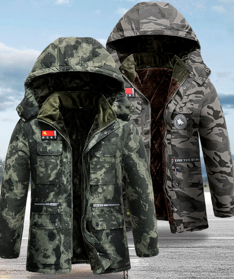 Демисезонная хлопковая камуфляжная толстовка с капюшоном, удерживающий тепло дорожный пуховик