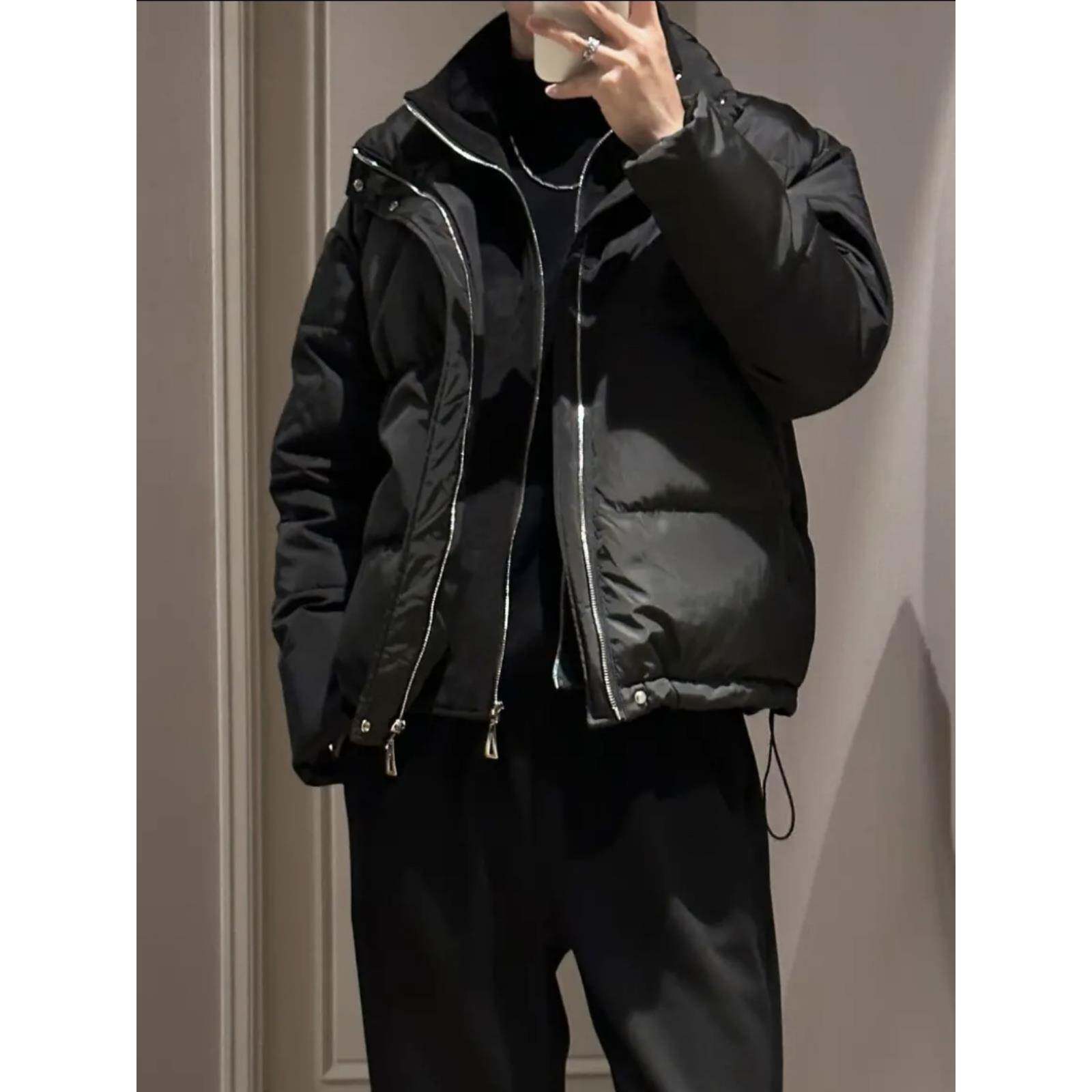 Комплект, демисезонный трендовый пуховик, зимняя хлопковая куртка с молнией, мужской стиль