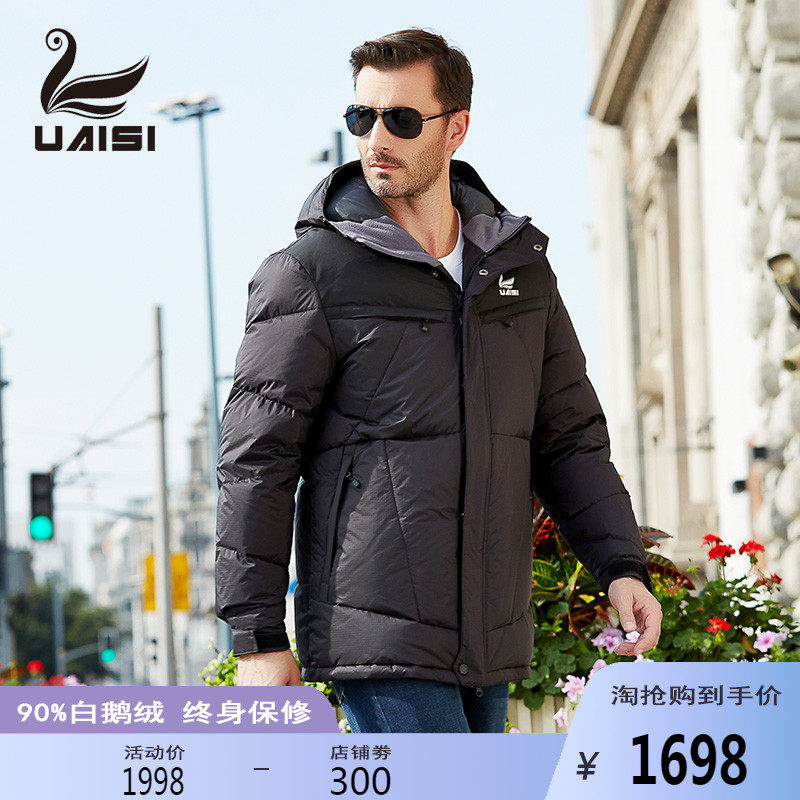 Длинный пуховик для мальчиков, удерживающая тепло толстовка с капюшоном с капюшоном с пухом, гусиный пух, средней длины, для среднего возраста