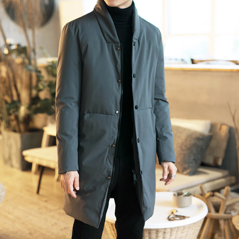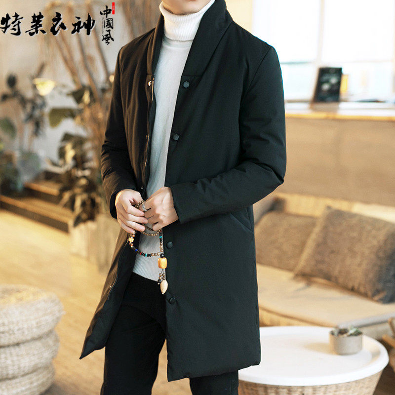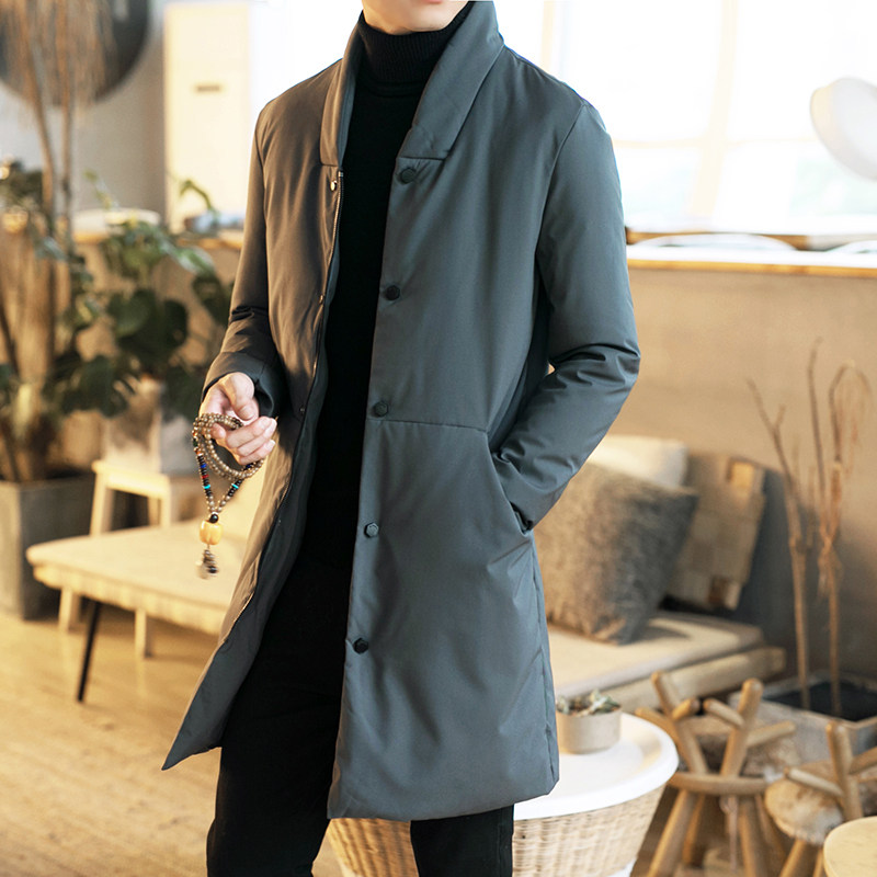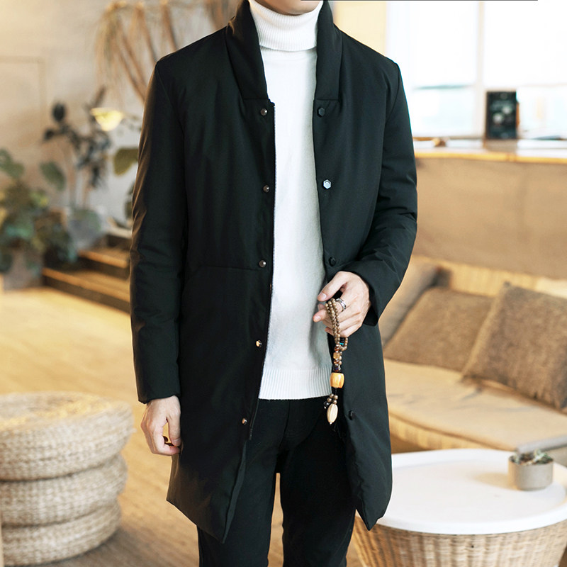 Длинный пуховик для мальчиков, мужская зимняя легкая и тонкая куртка с пухом, средней длины, увеличенная толщина, китайский стиль, большой размер