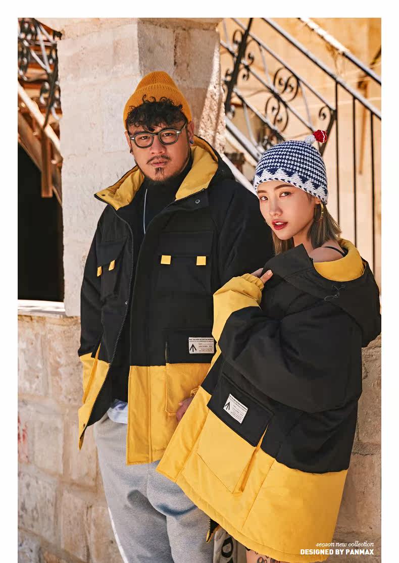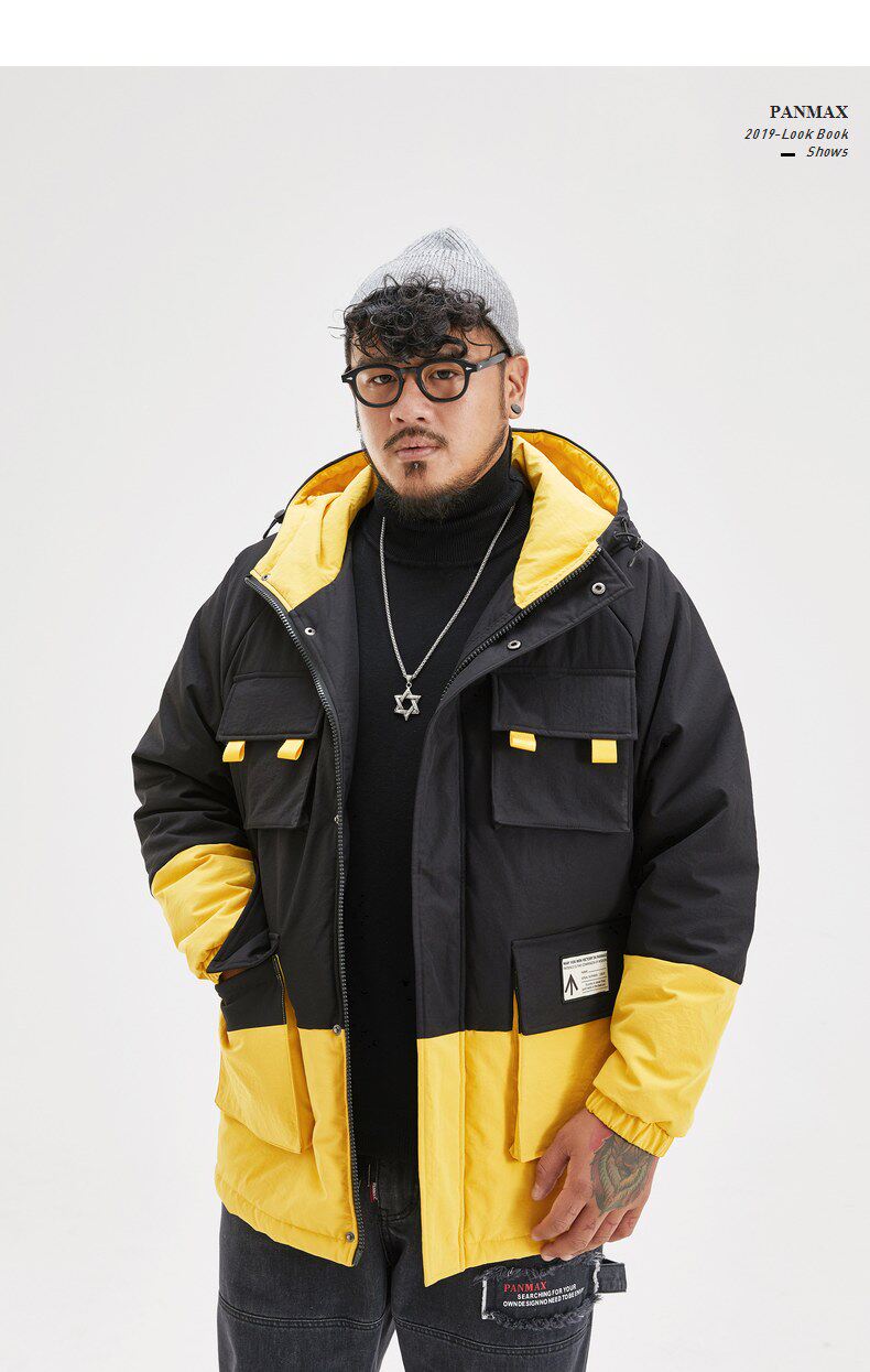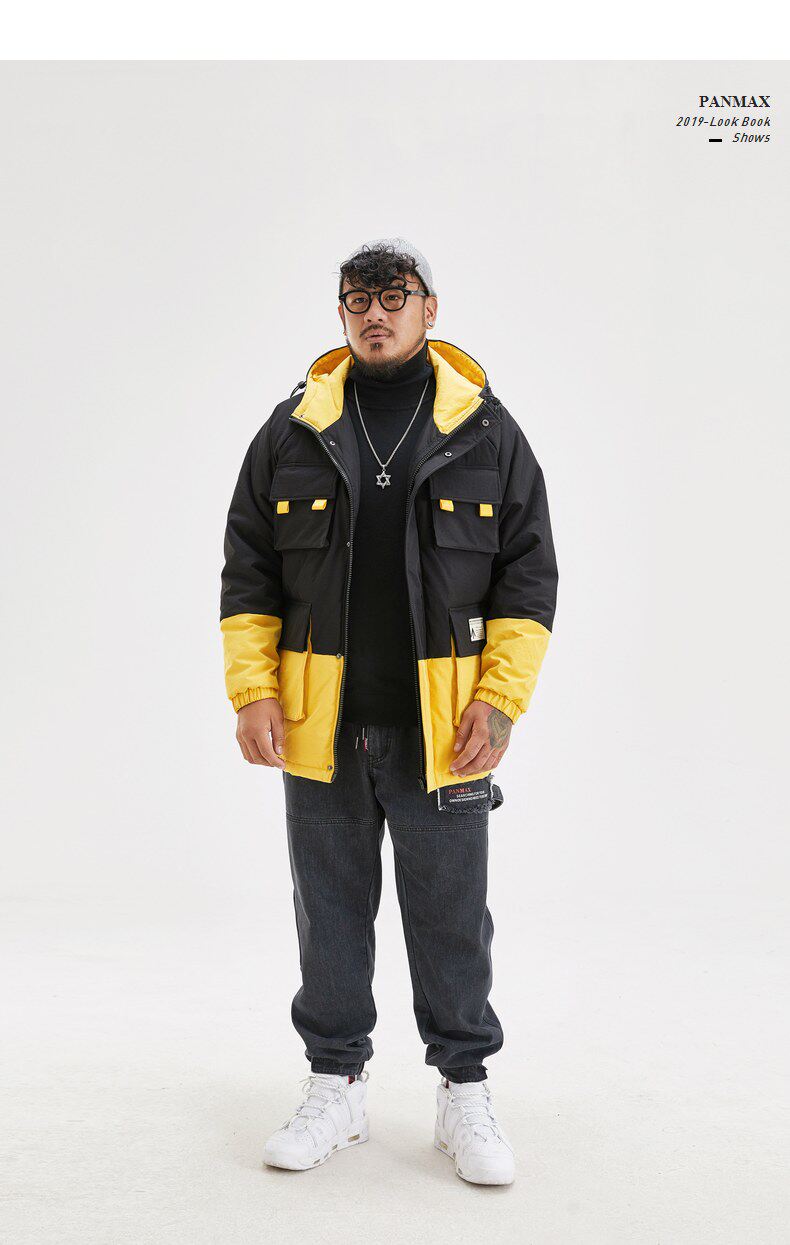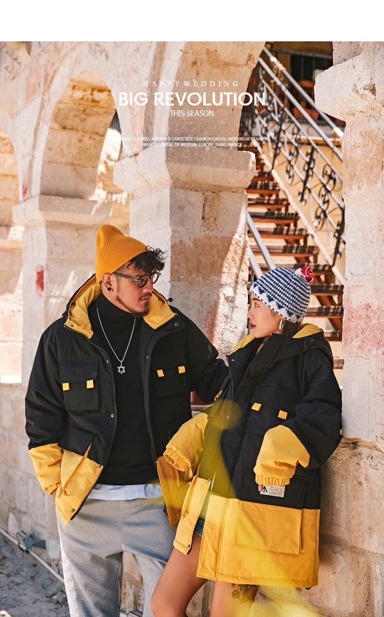 Черно-желтая желтая куртка, пуховик, большой размер, для влюбленных