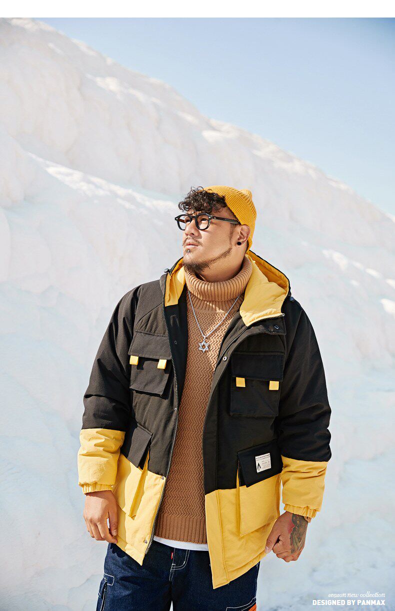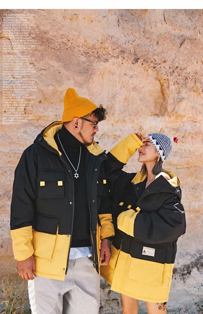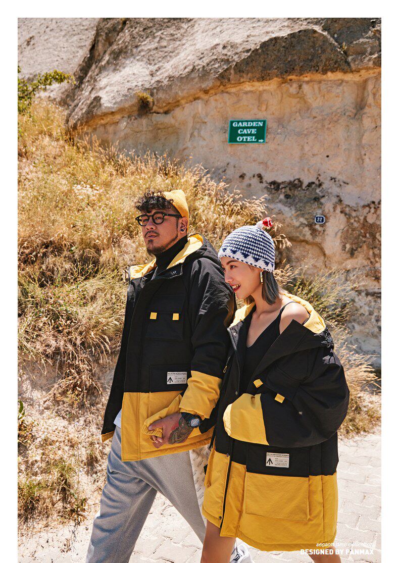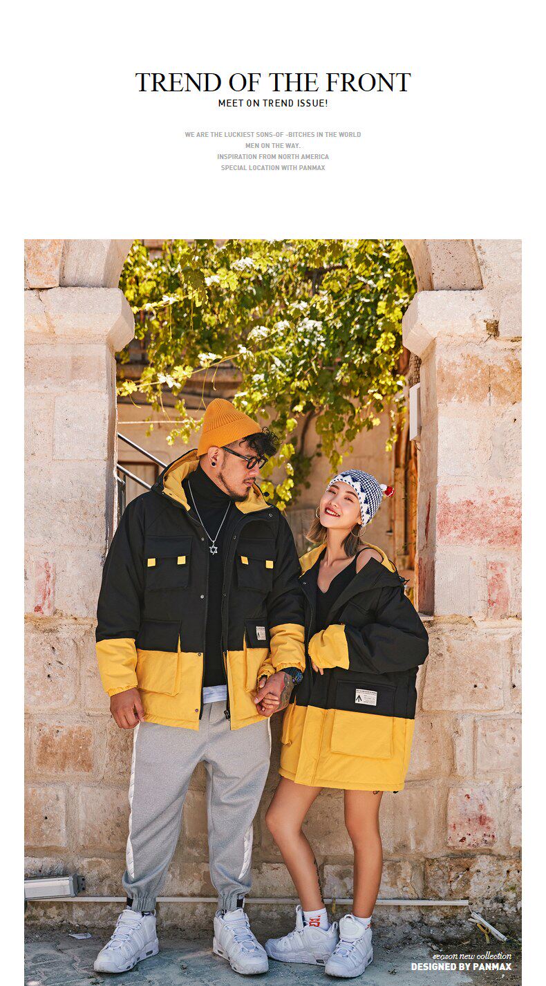 Черно-желтая желтая куртка, пуховик, большой размер, для влюбленных