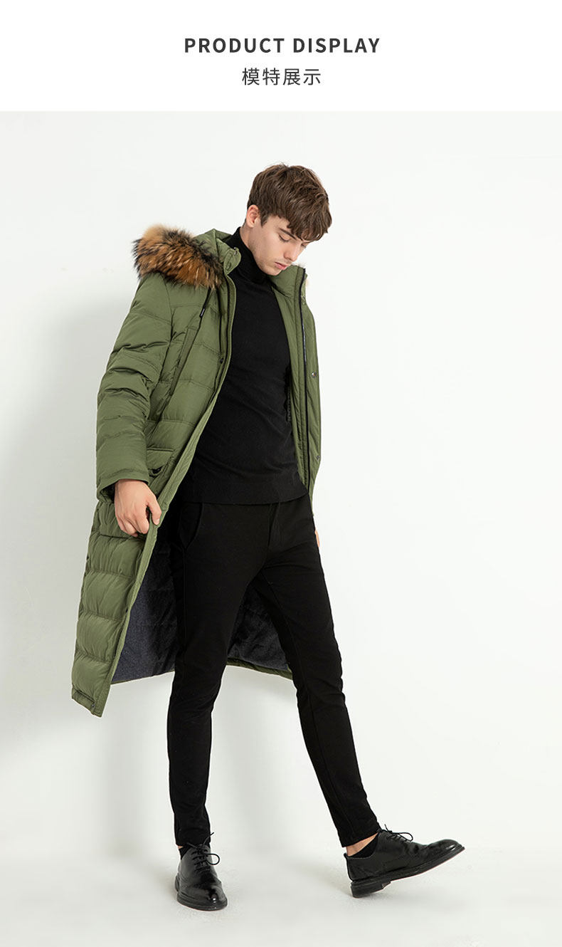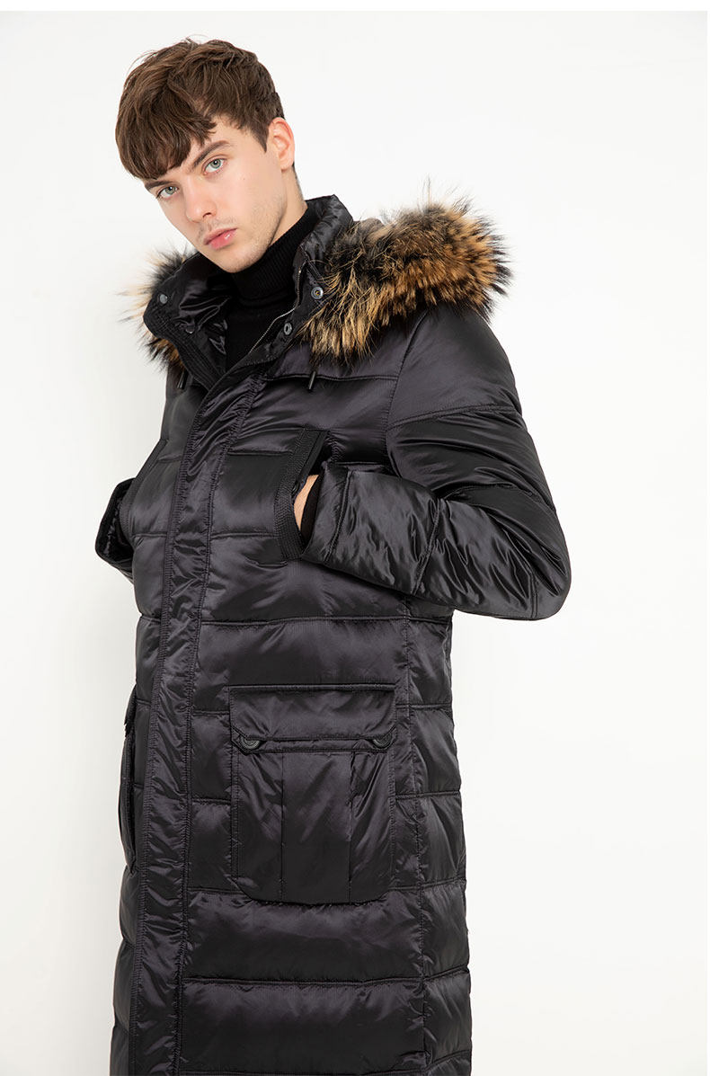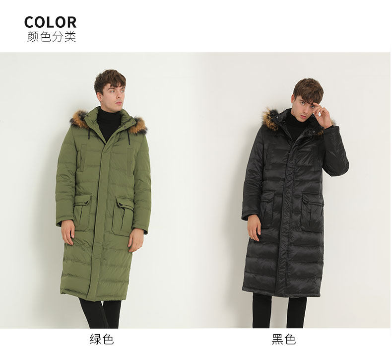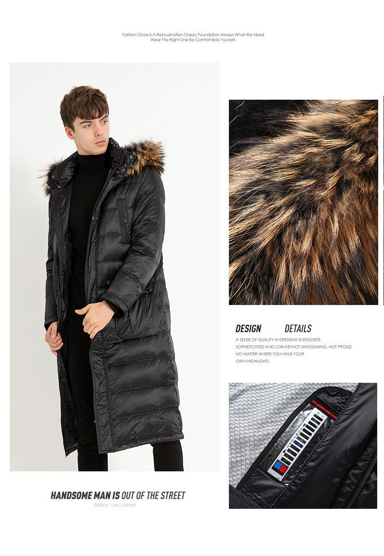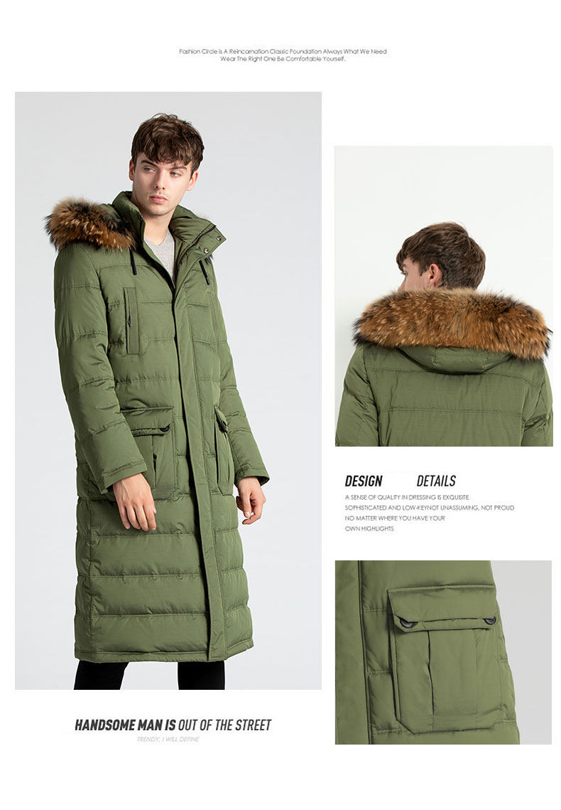 Пуховик, пальто с капюшоном, мужская зимняя длинная куртка, гусиный пух