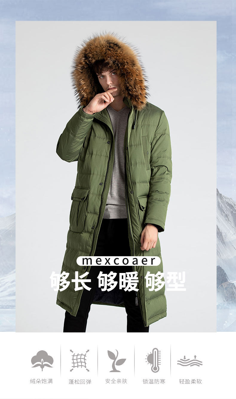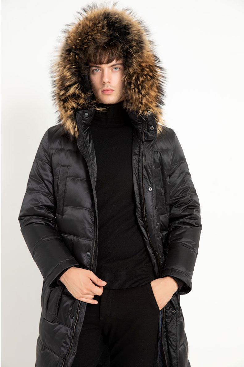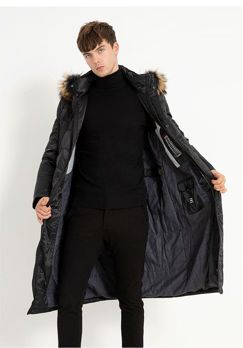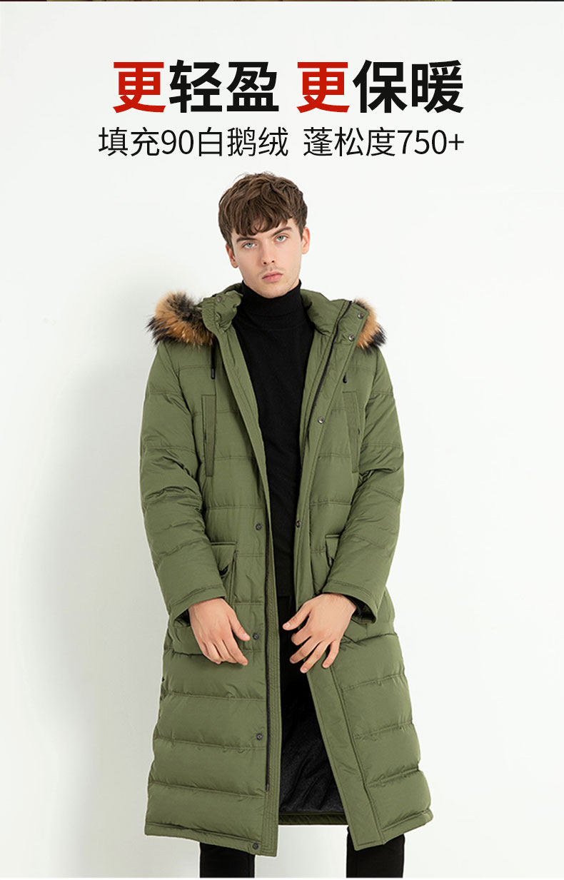Пуховик, пальто с капюшоном, мужская зимняя длинная куртка, гусиный пух