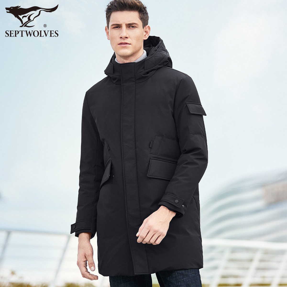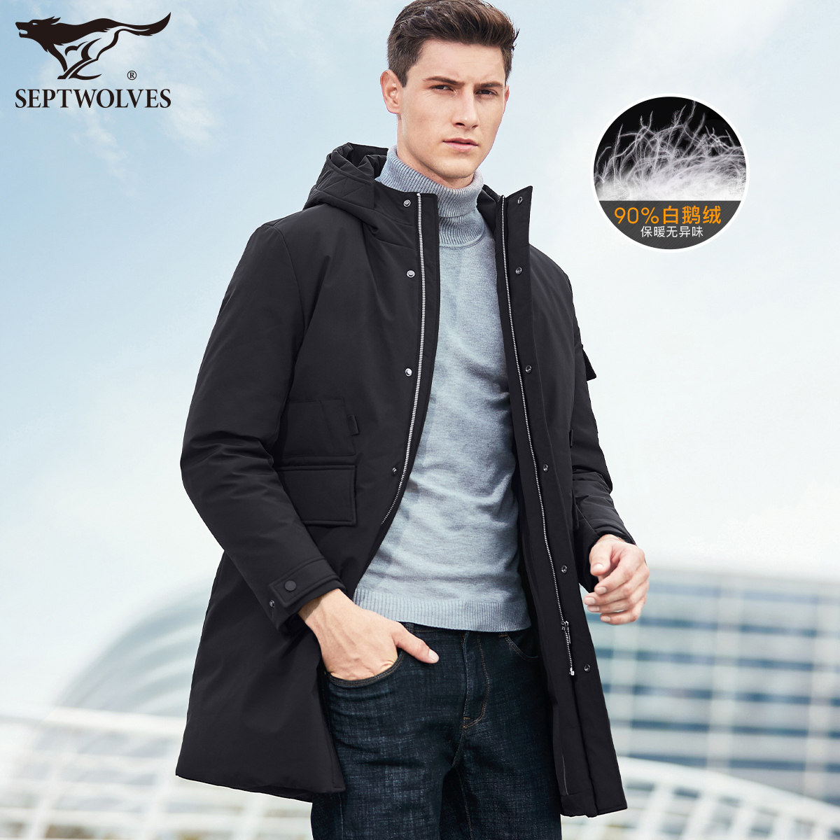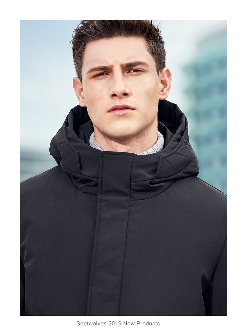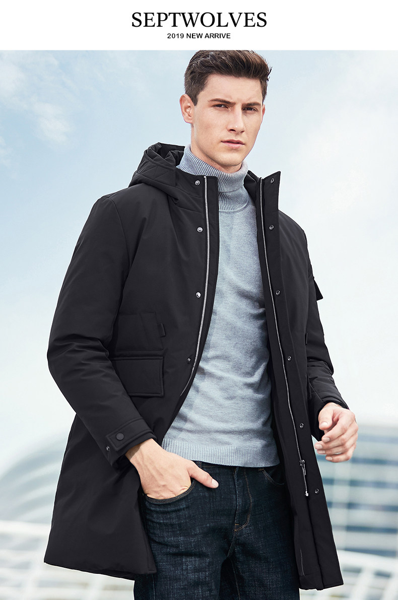 Septwolves, зимний пуховик, бархатная мужская куртка с капюшоном, средней длины, гусиный пух