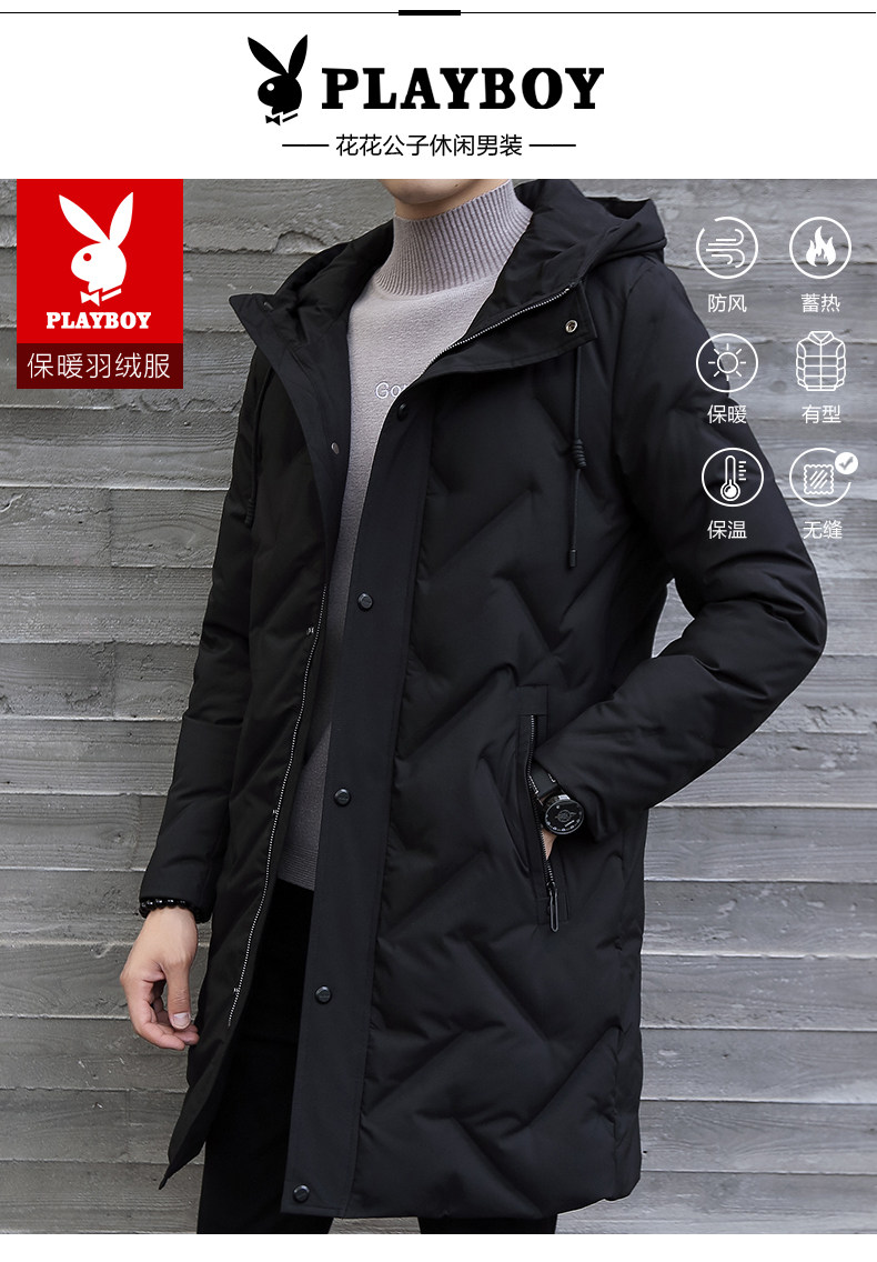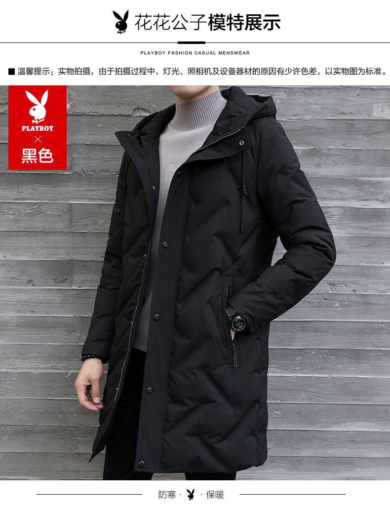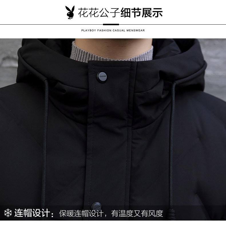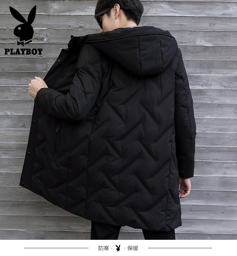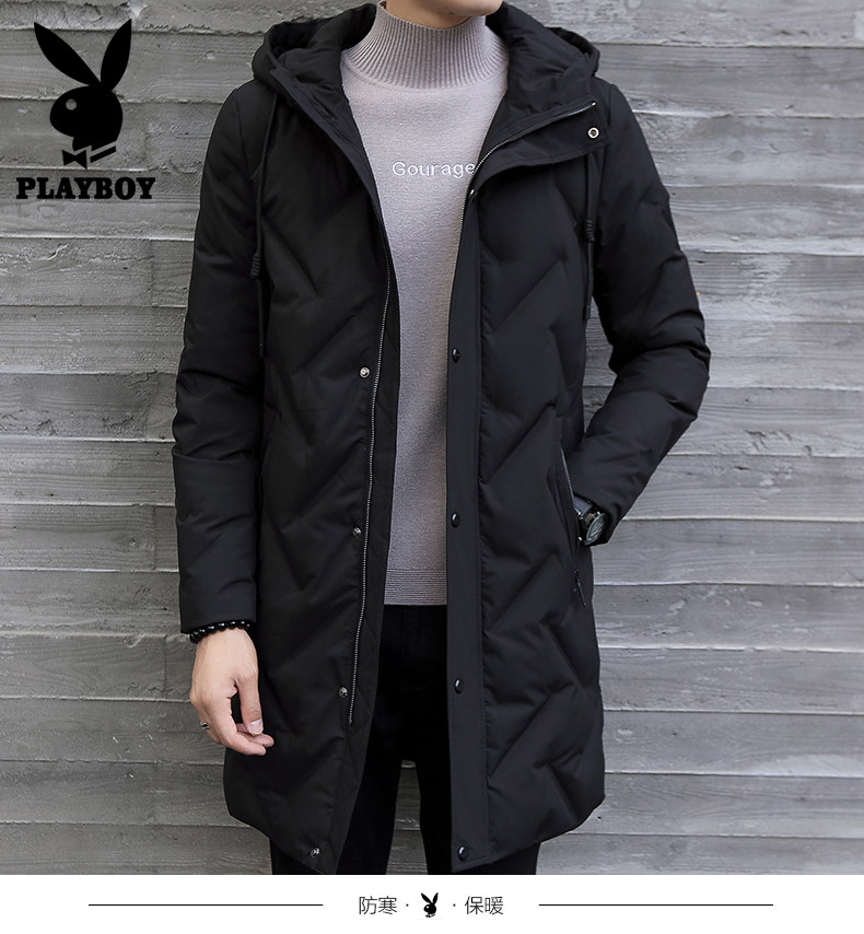 Playboy, мужской пуховик, демисезонная длинная черная толстовка с капюшоном, мужская куртка, увеличенная толщина