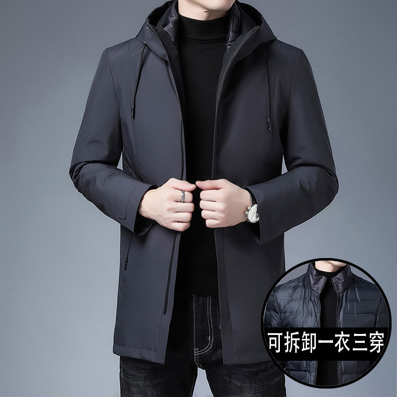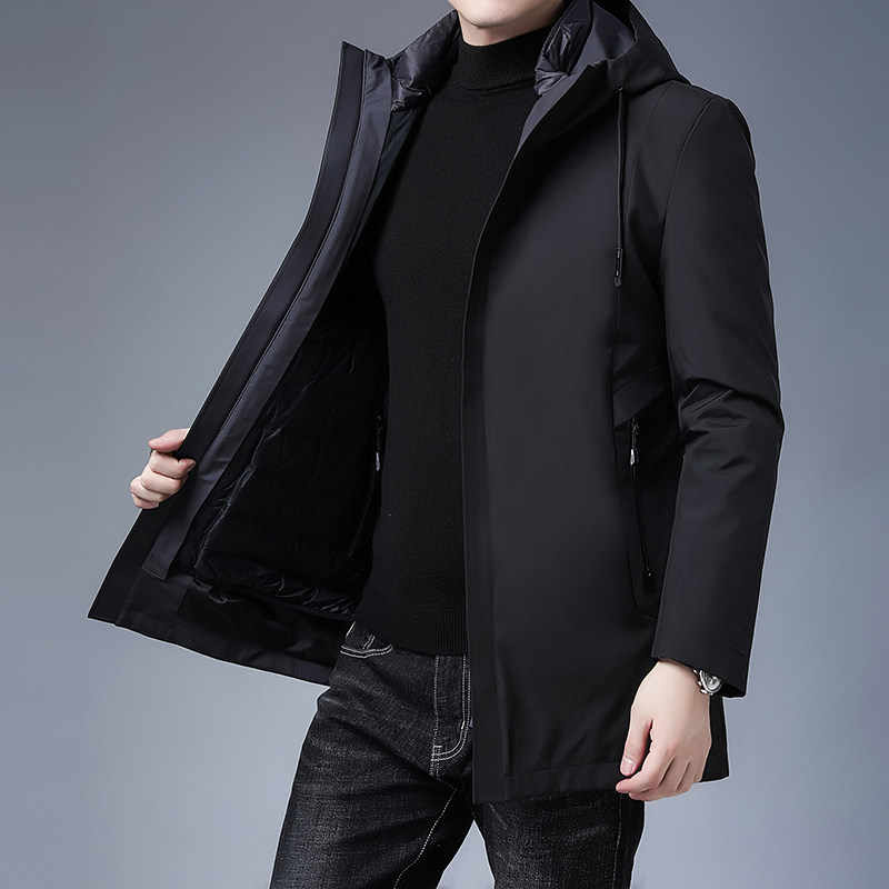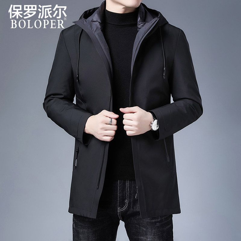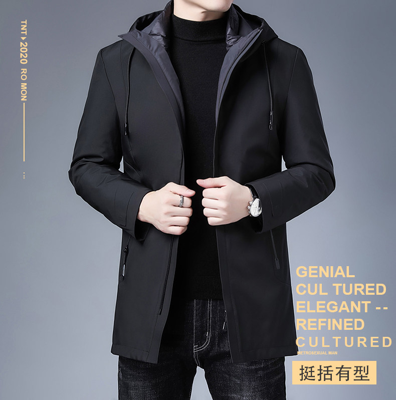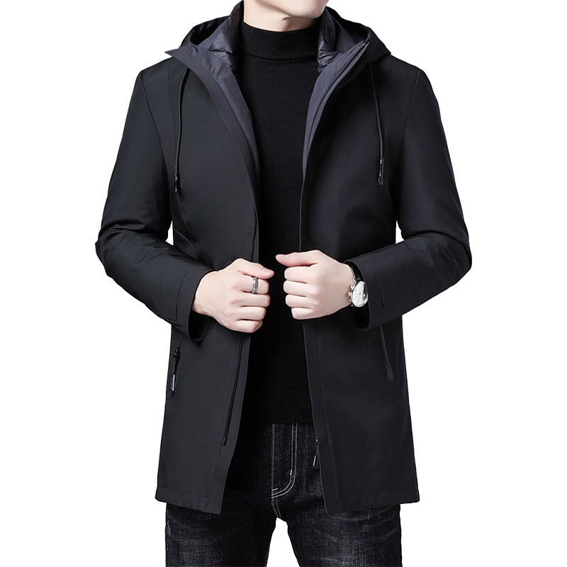 Пуховик для мальчиков, длинная толстовка с капюшоном, бархатная куртка, 2020, облегающий крой, увеличенная толщина, утиный пух