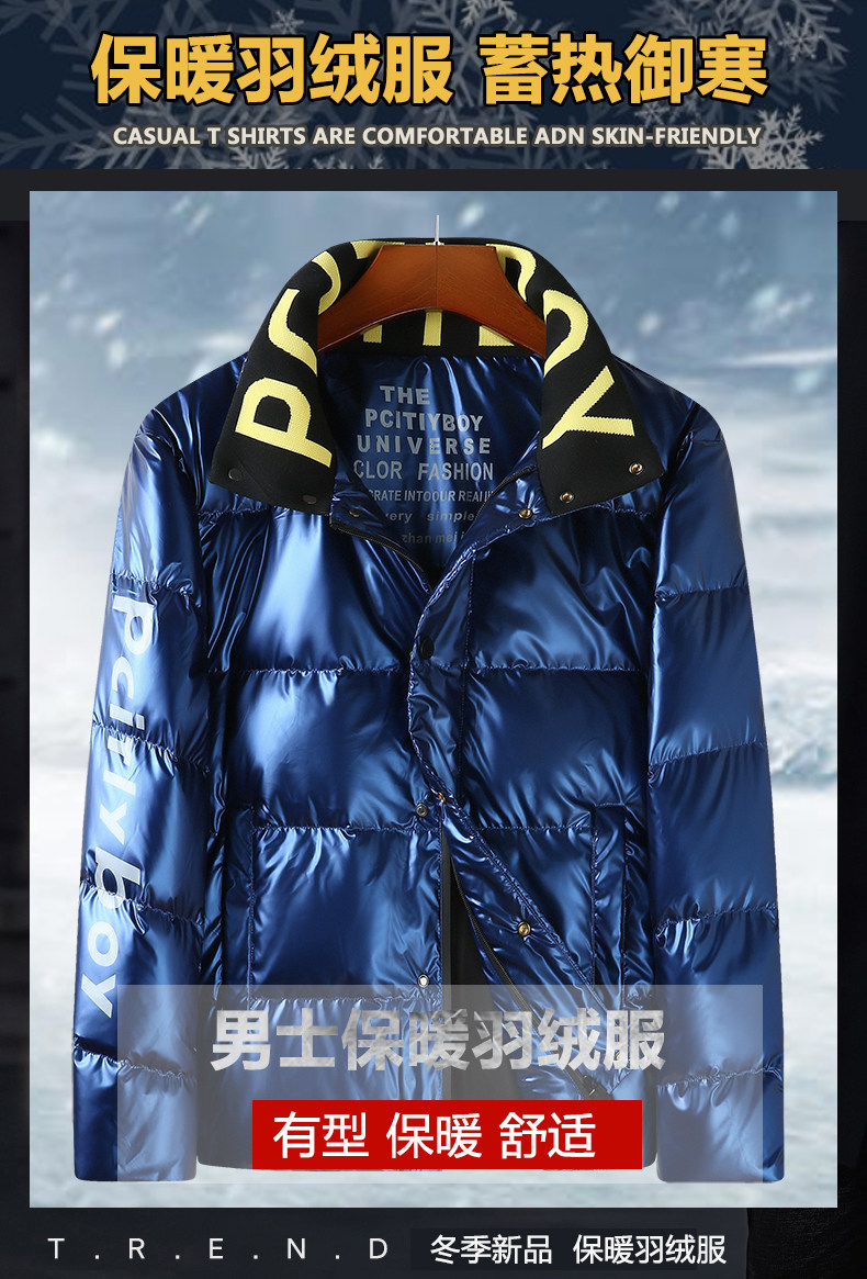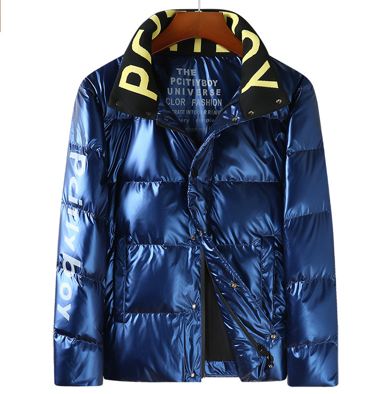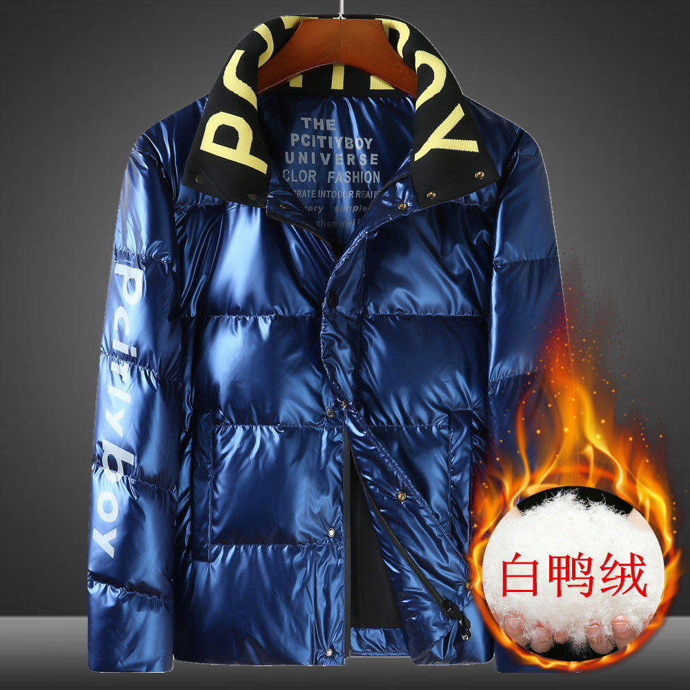 Мужской глянцевый короткий пуховик, термобелье, мужская куртка, увеличенная толщина, большой размер