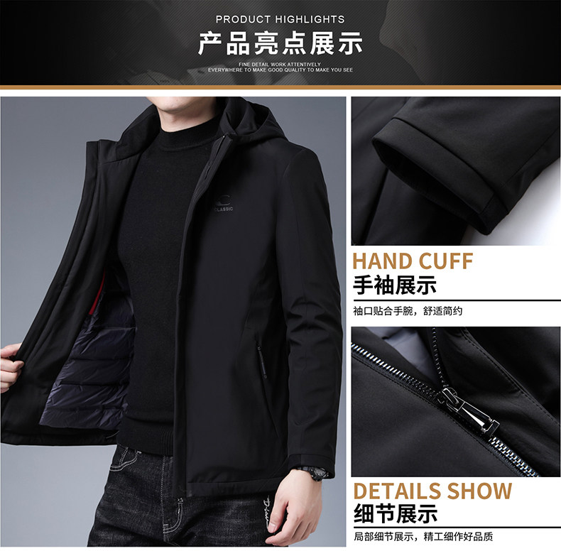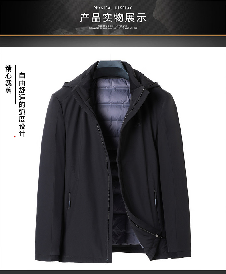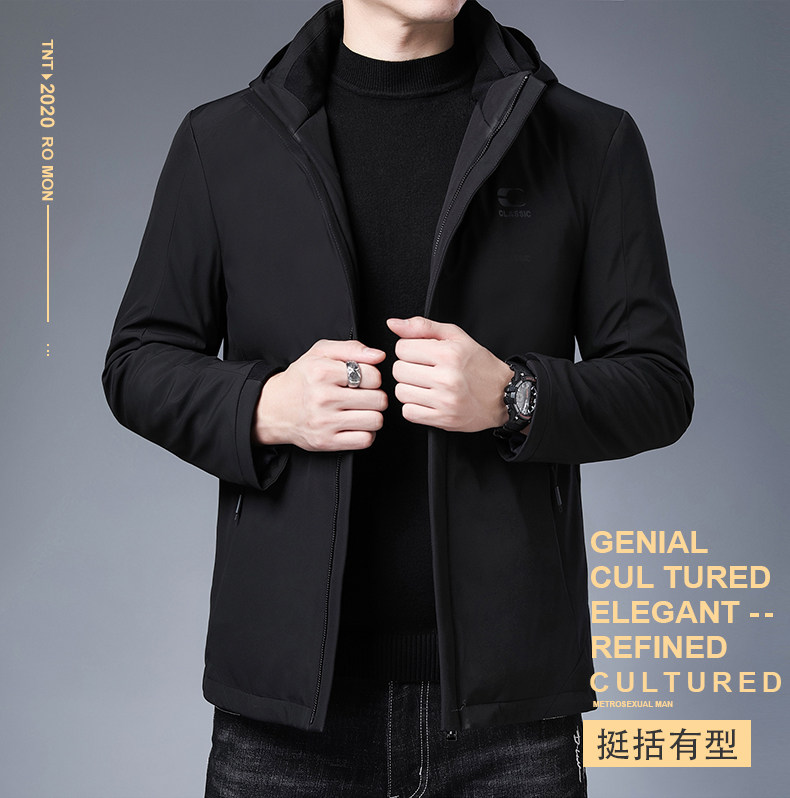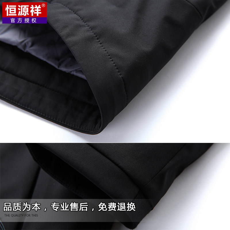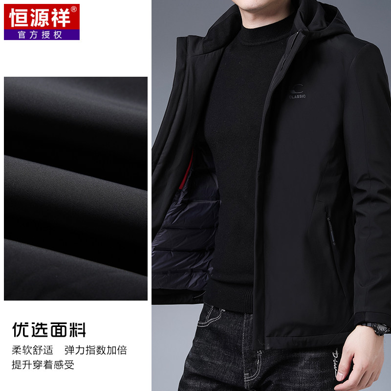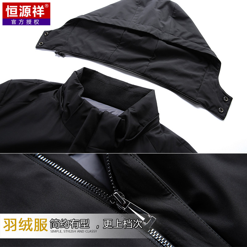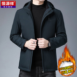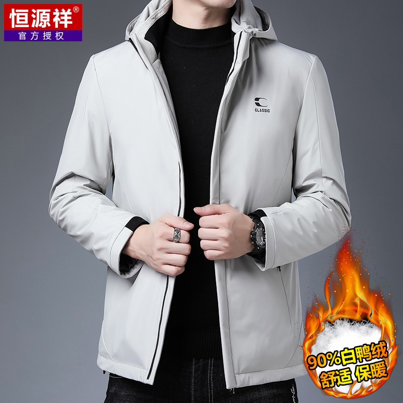 恒源祥 Короткий зимний утепленный пуховик, бархатная куртка с капюшоном, свободный крой, для мужчины среднего возраста, утиный пух