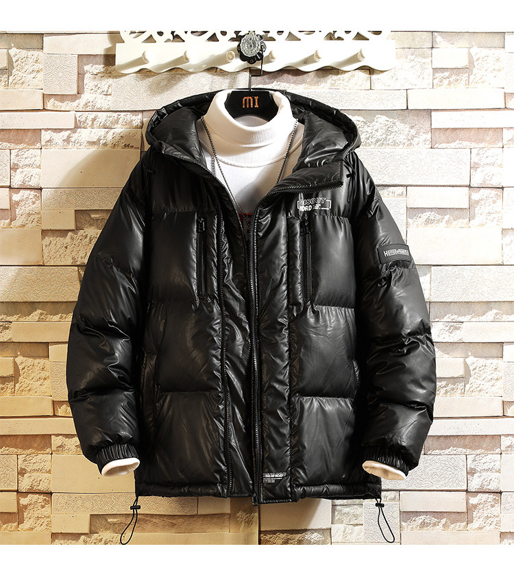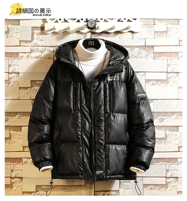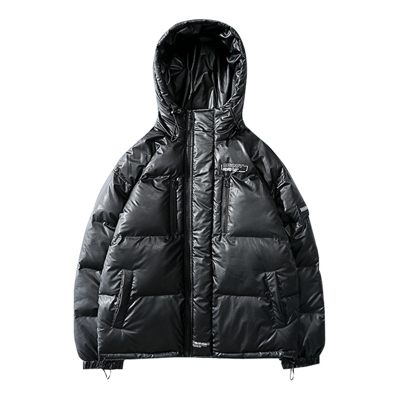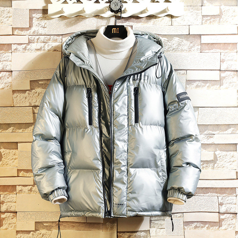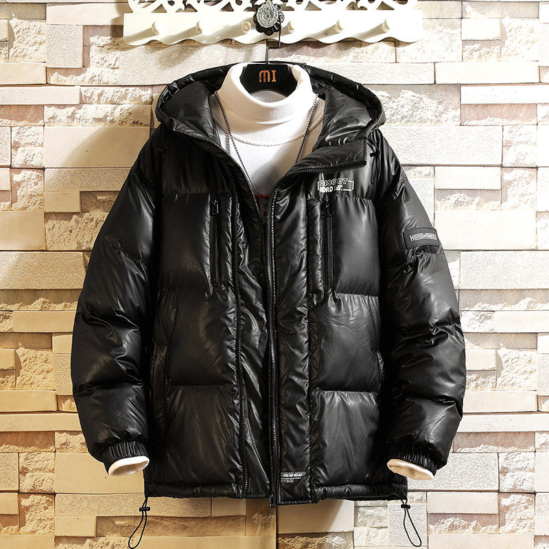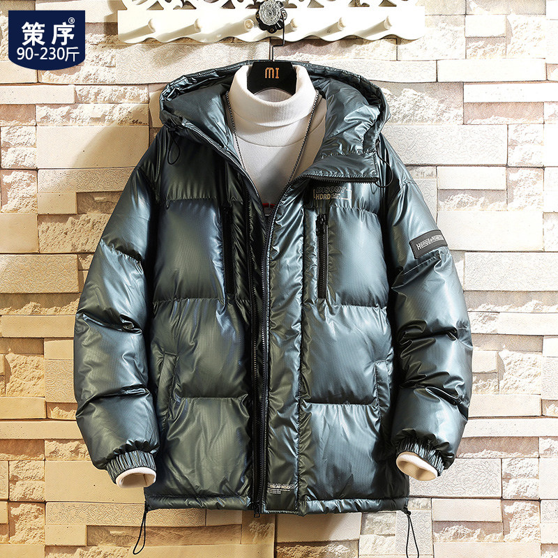 Мужской глянцевый зимний пуховик, утепленная куртка с капюшоном, свободный крой, оверсайз, большой размер