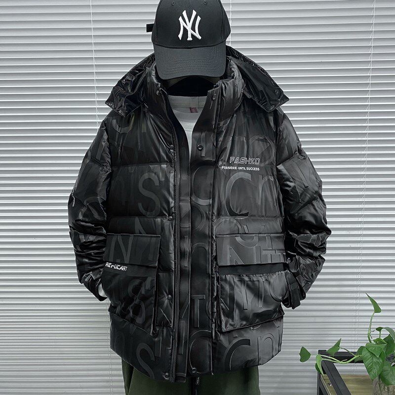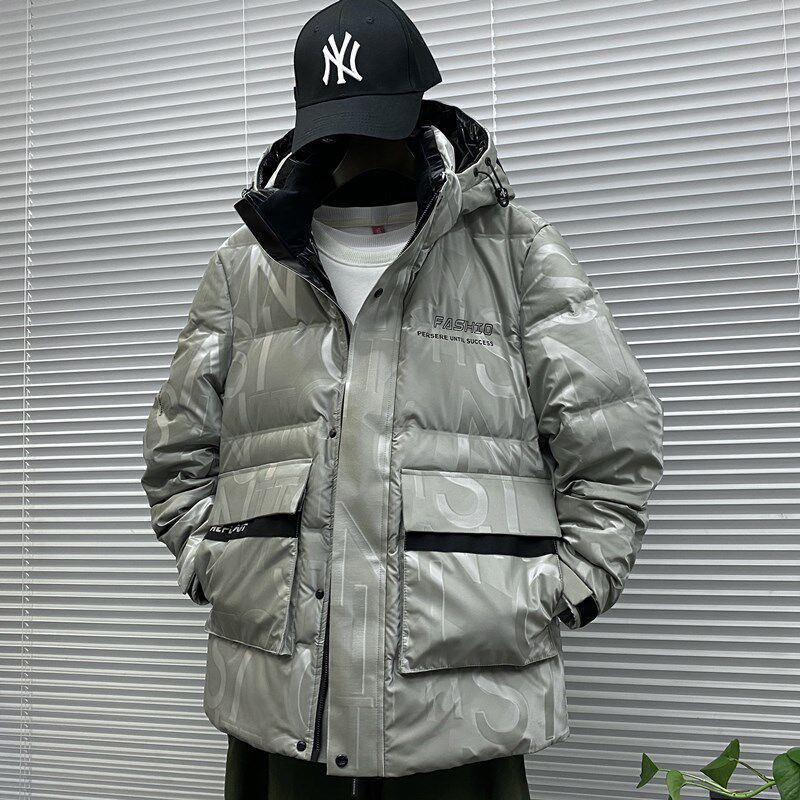 Зимний трендовый пуховик, куртка с капюшоном, в корейском стиле, облегающий крой, набивка пером
