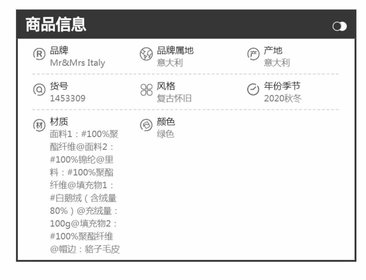 - Информация о товаре