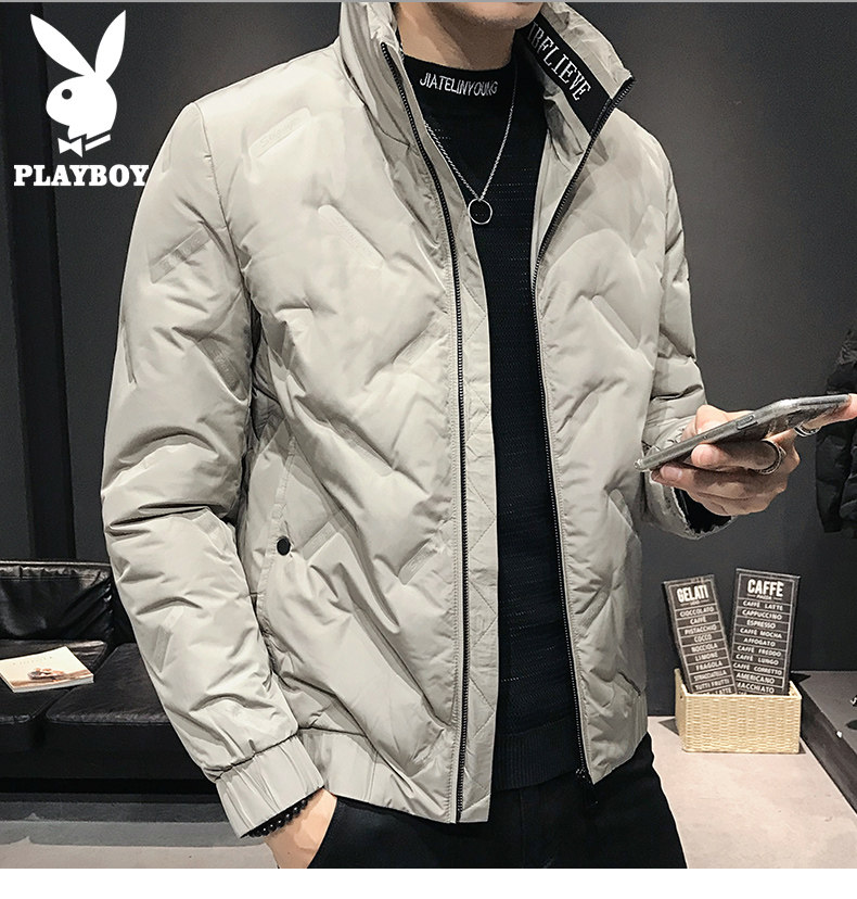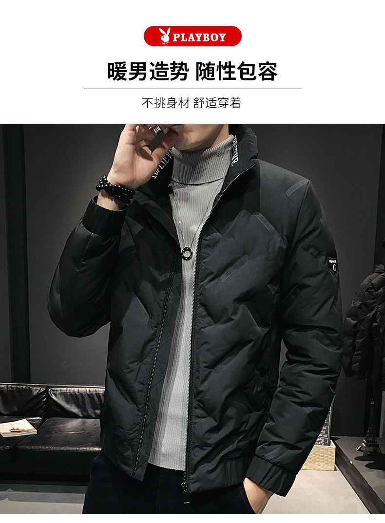 Playboy, мужской зимний короткий трендовый пуховик, утепленная мужская куртка