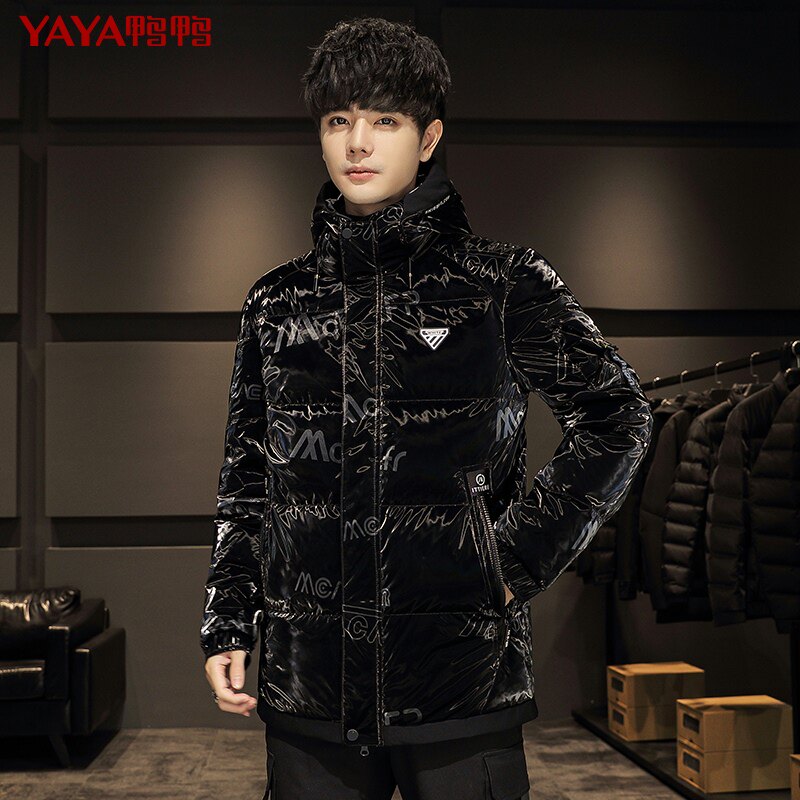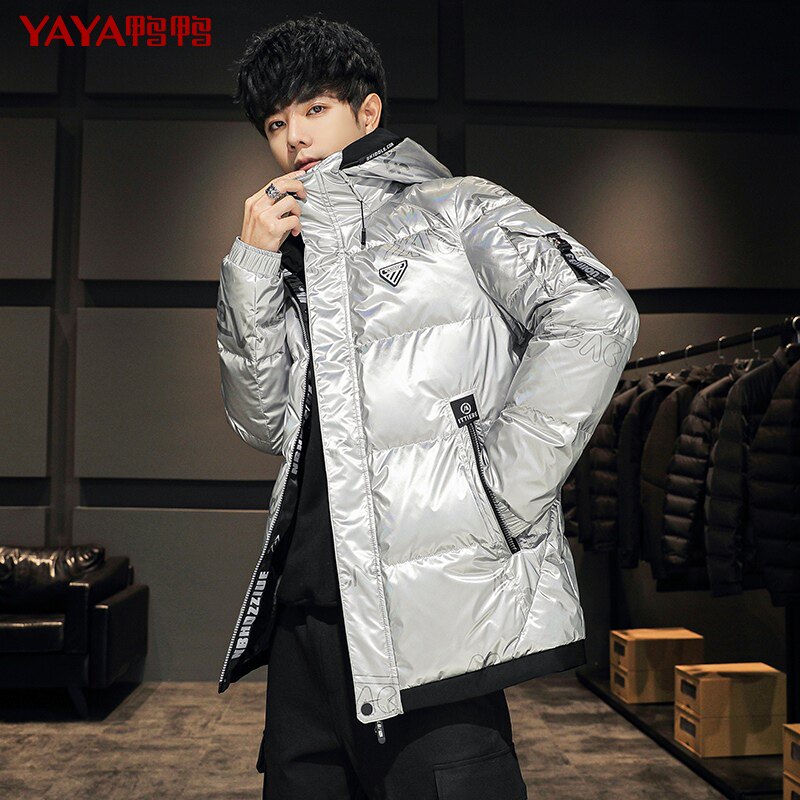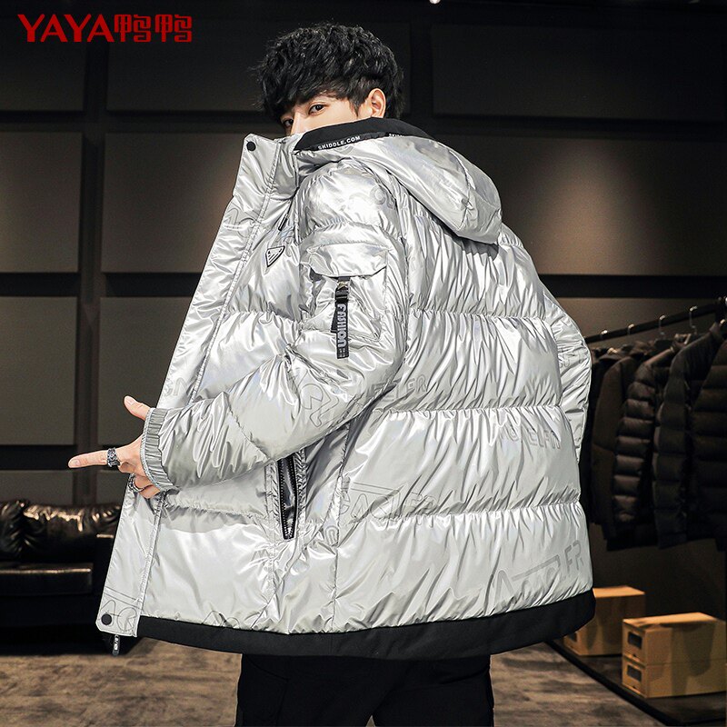 Короткий глянцевый пуховик с капюшоном, модная трендовая куртка, утиный пух, 2021 года