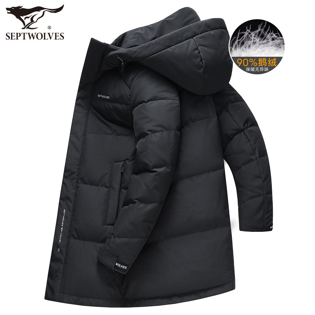 Septwolves, мужской зимний пуховик, утепленная длинная толстовка с капюшоном, бархатная мужская куртка, 2023, средней длины, гусиный пух