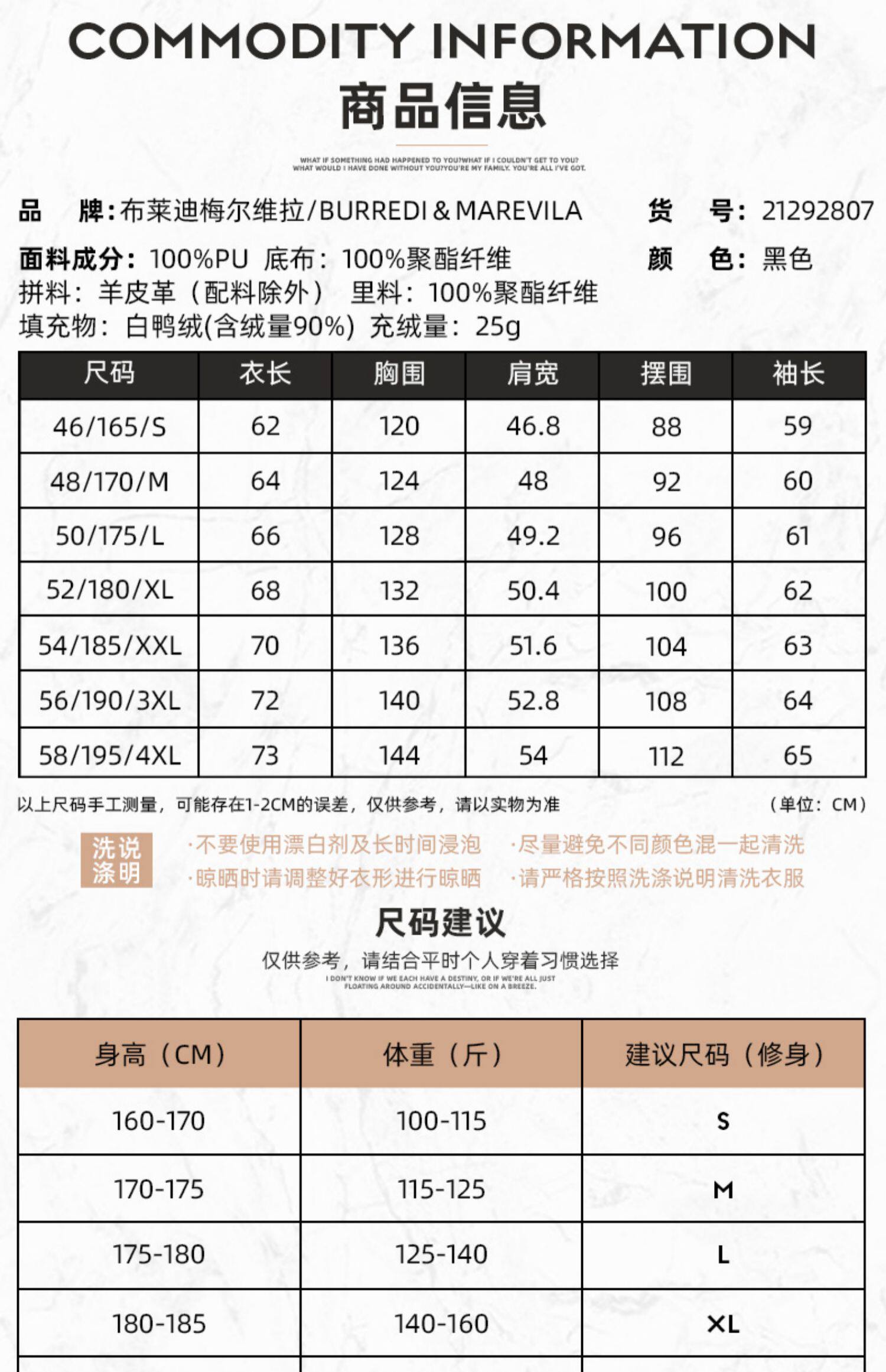 Размер: 52/XL/180, 54/XXL/185, 56/XXXL/190, Пожалуйста, проконсультируйтесь с обслуживанием клиентов для точного кода