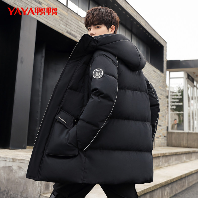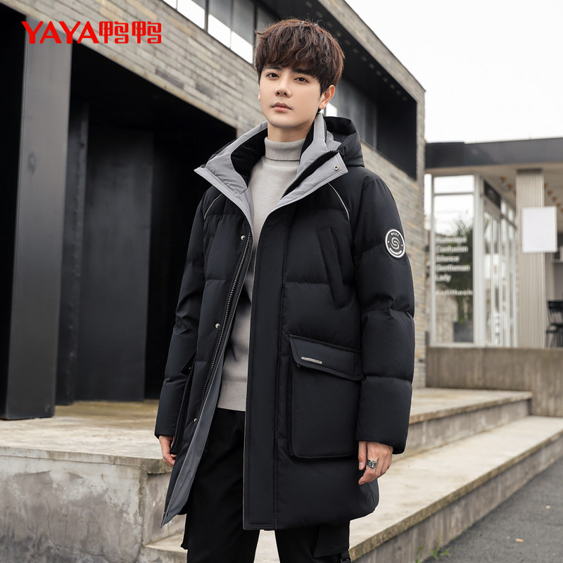 Пуховик для мальчиков, длинная зимняя толстовка с капюшоном, модная трендовая удерживающая тепло куртка, утиный пух, 2021 года