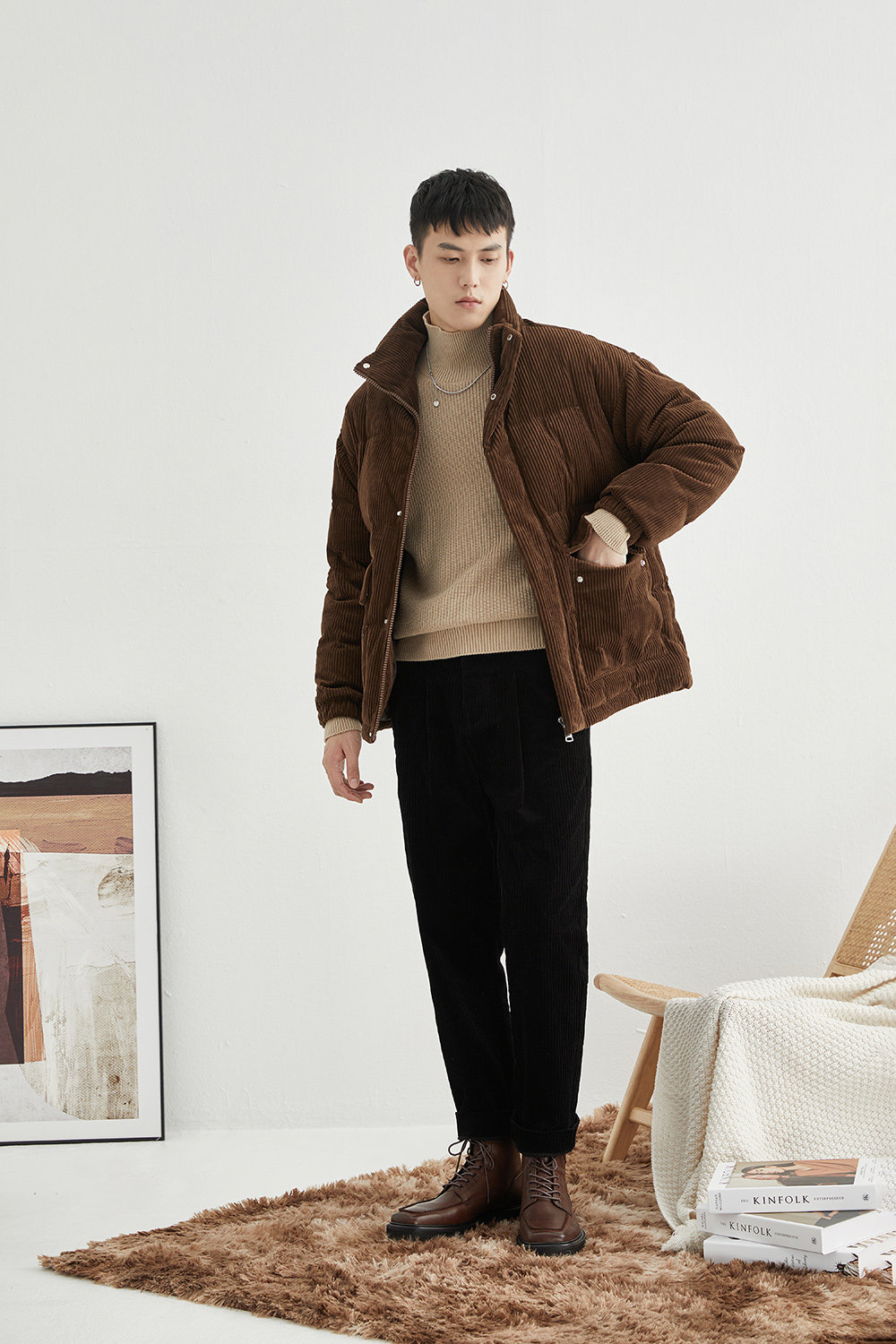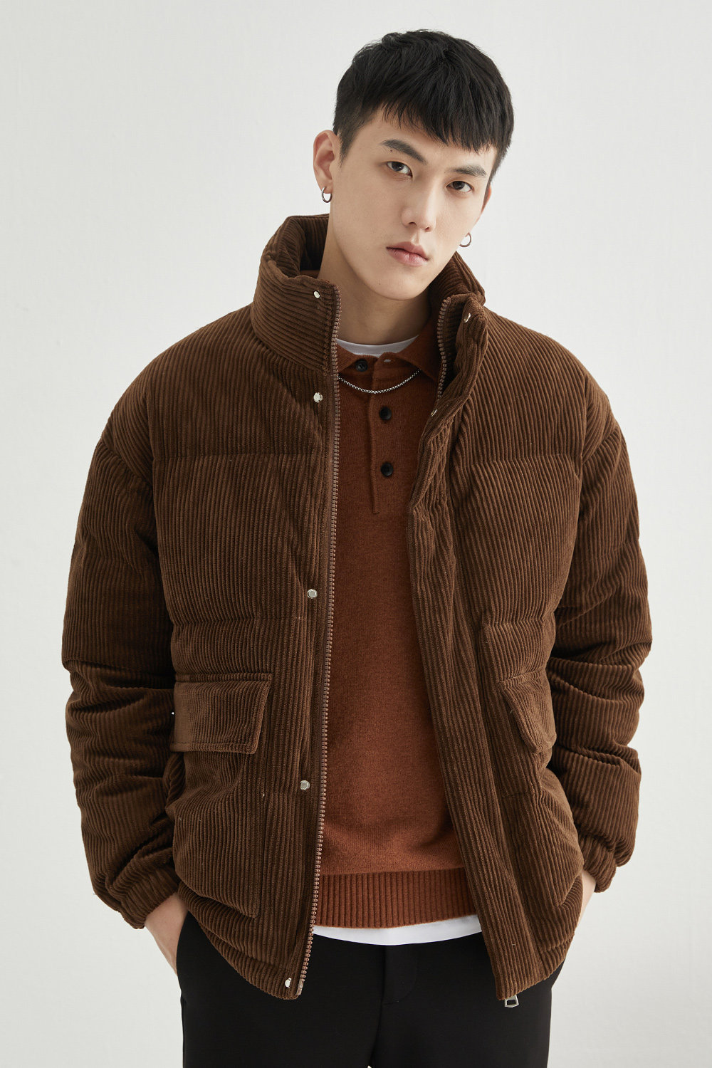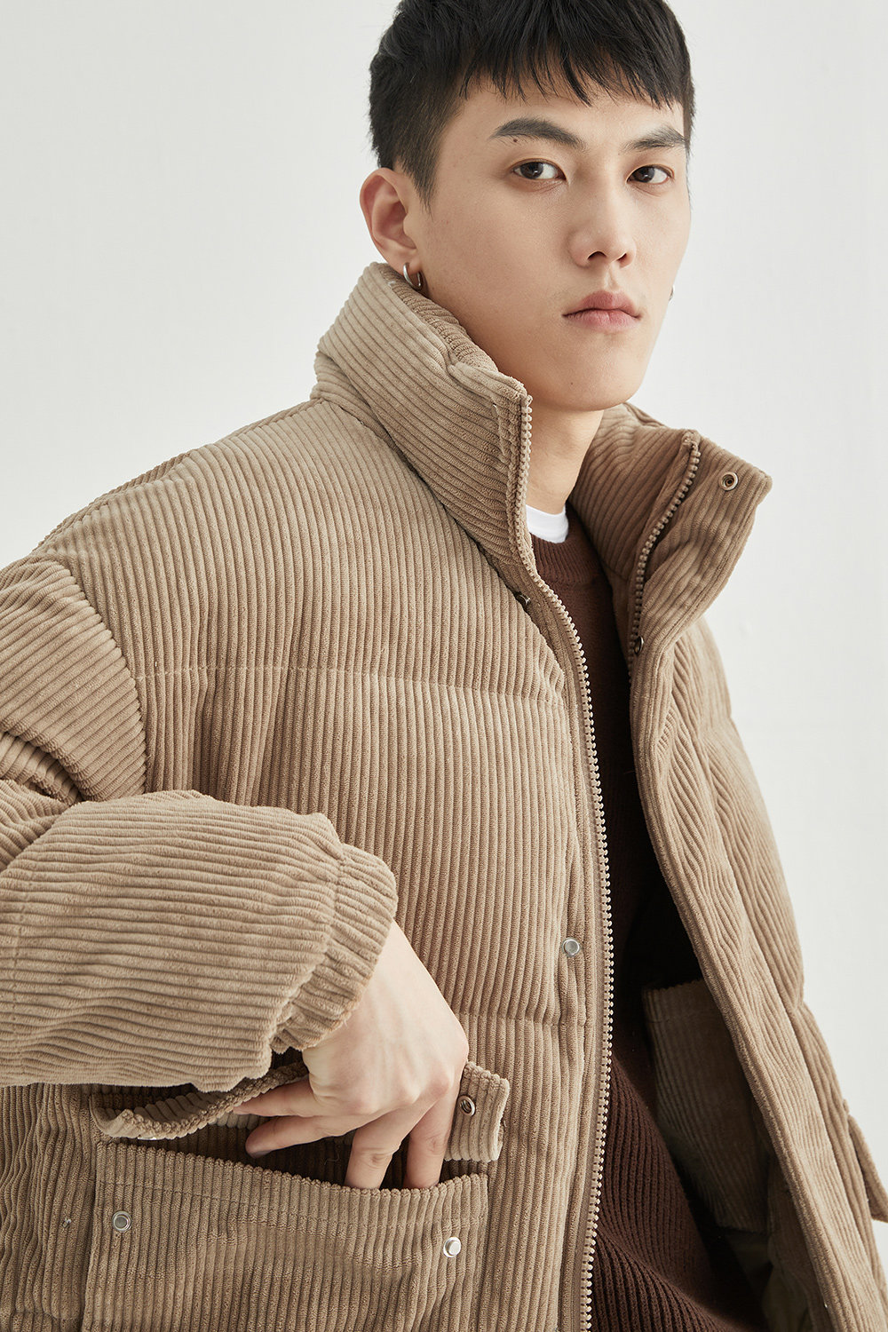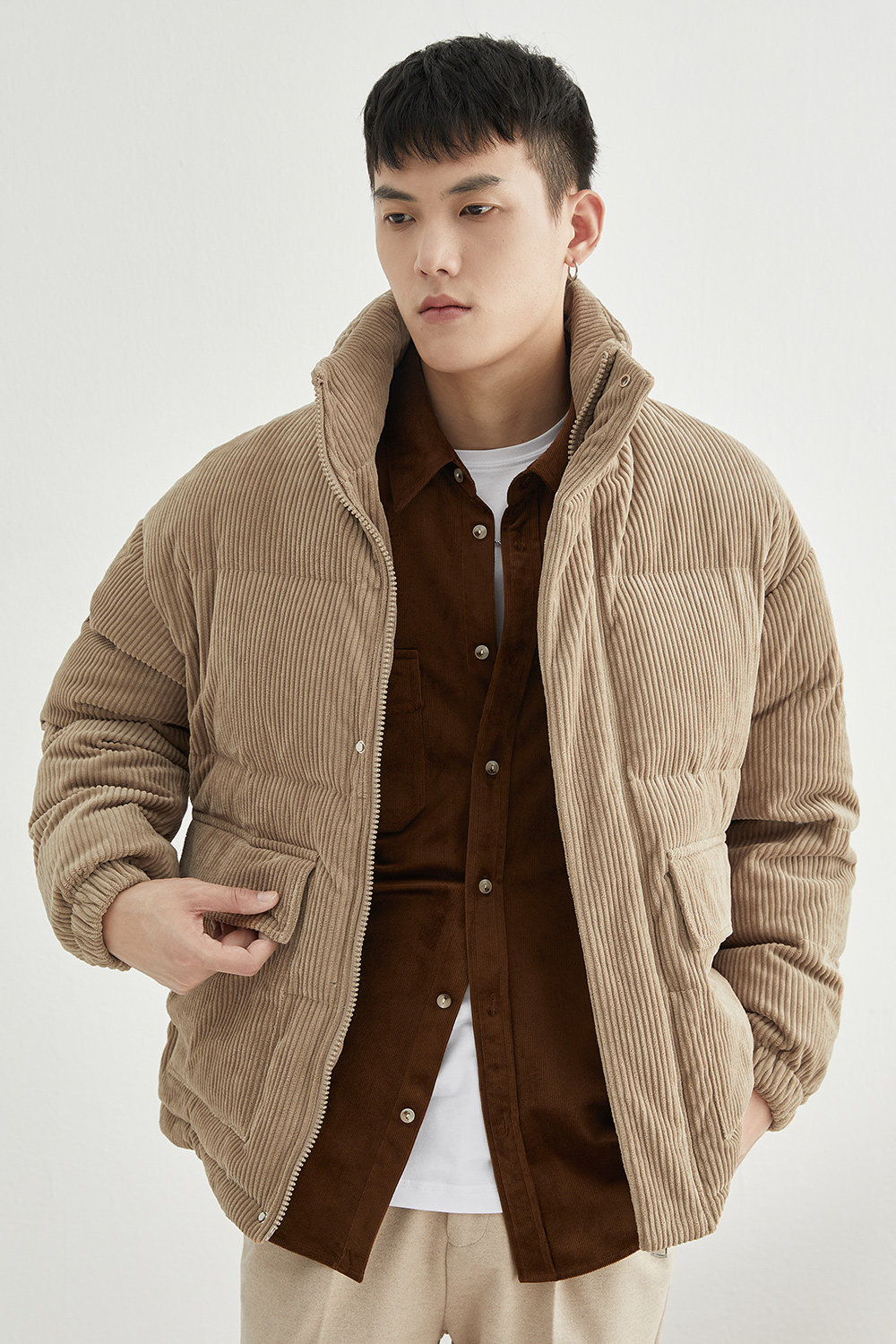 Вельветовая замшевая демисезонная короткая японская куртка с пухом, свободный крой
