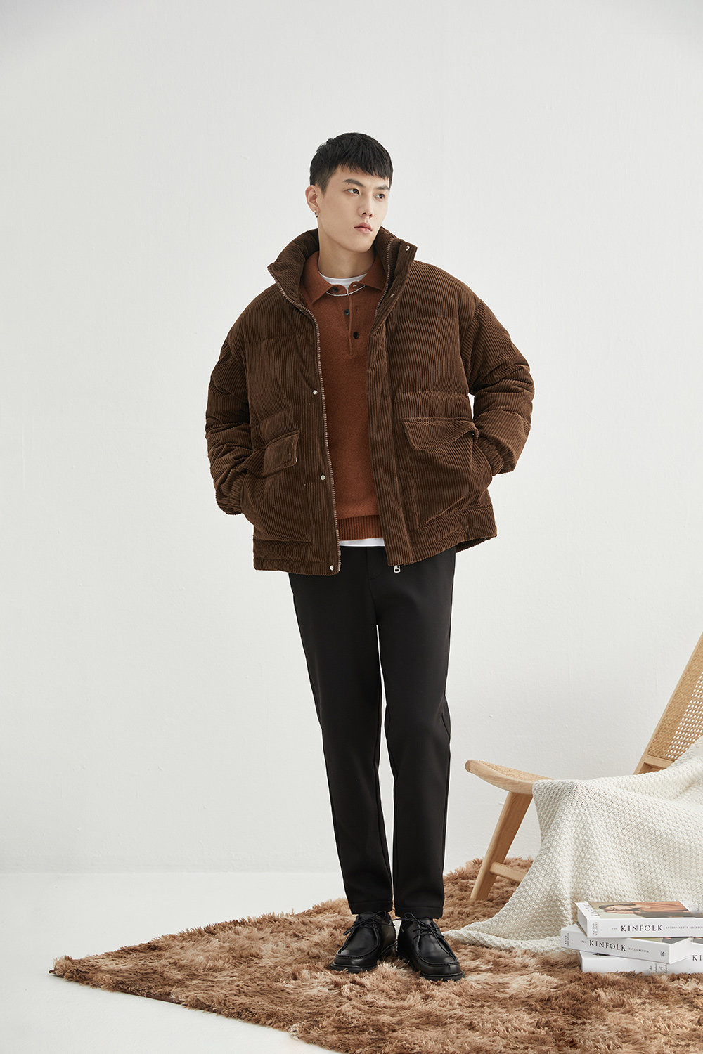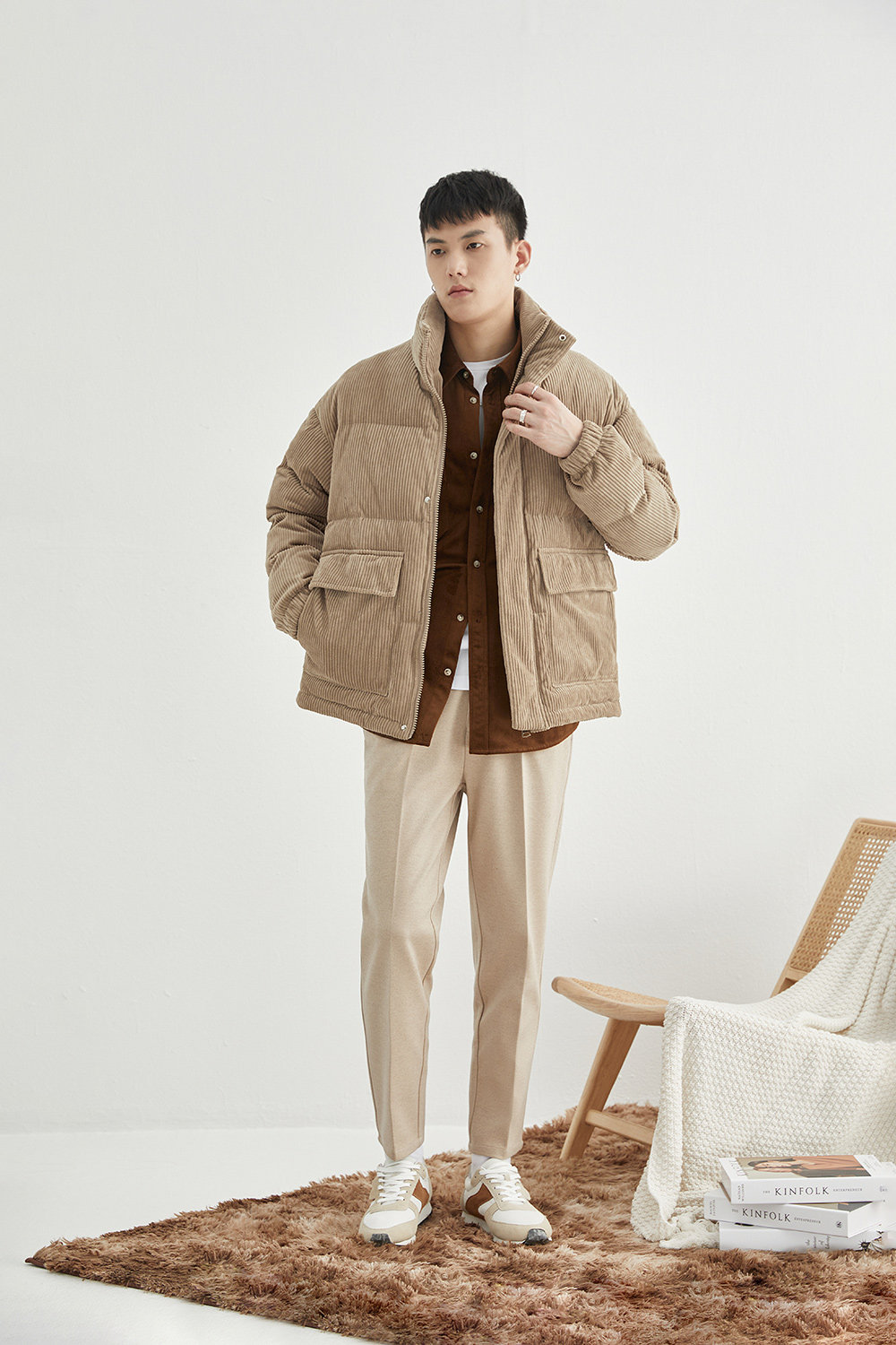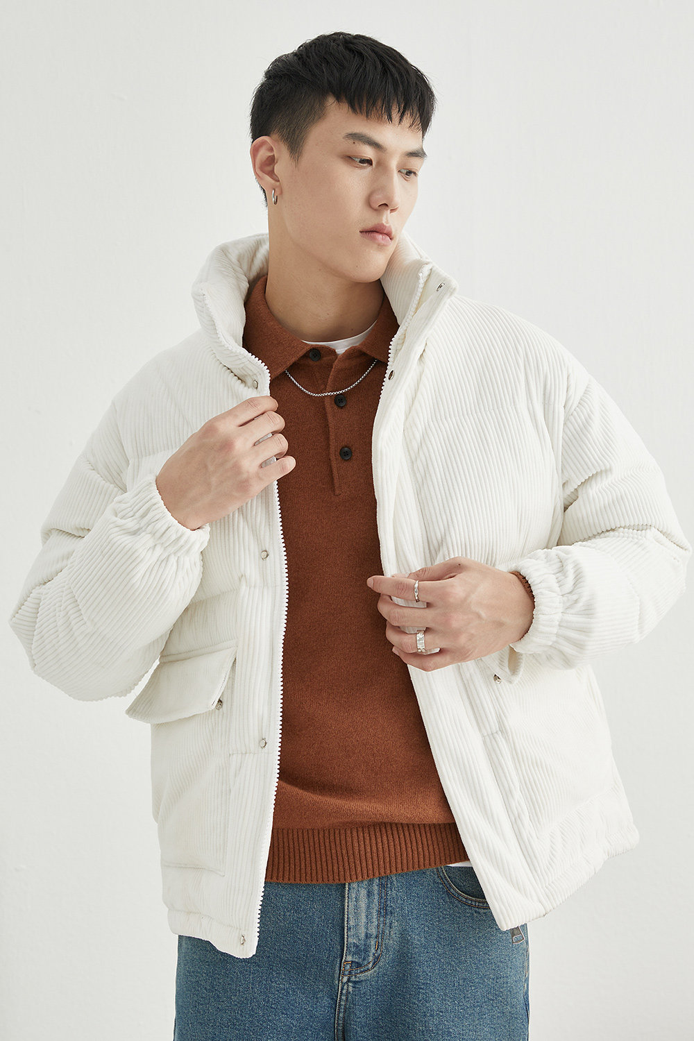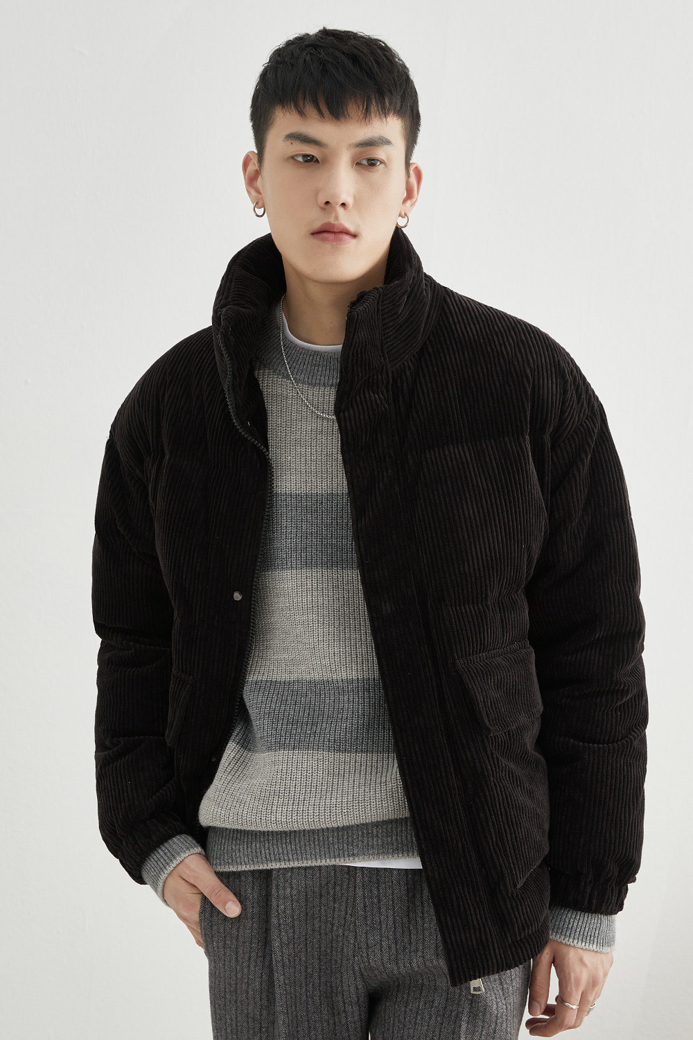 Вельветовая замшевая демисезонная короткая японская куртка с пухом, свободный крой