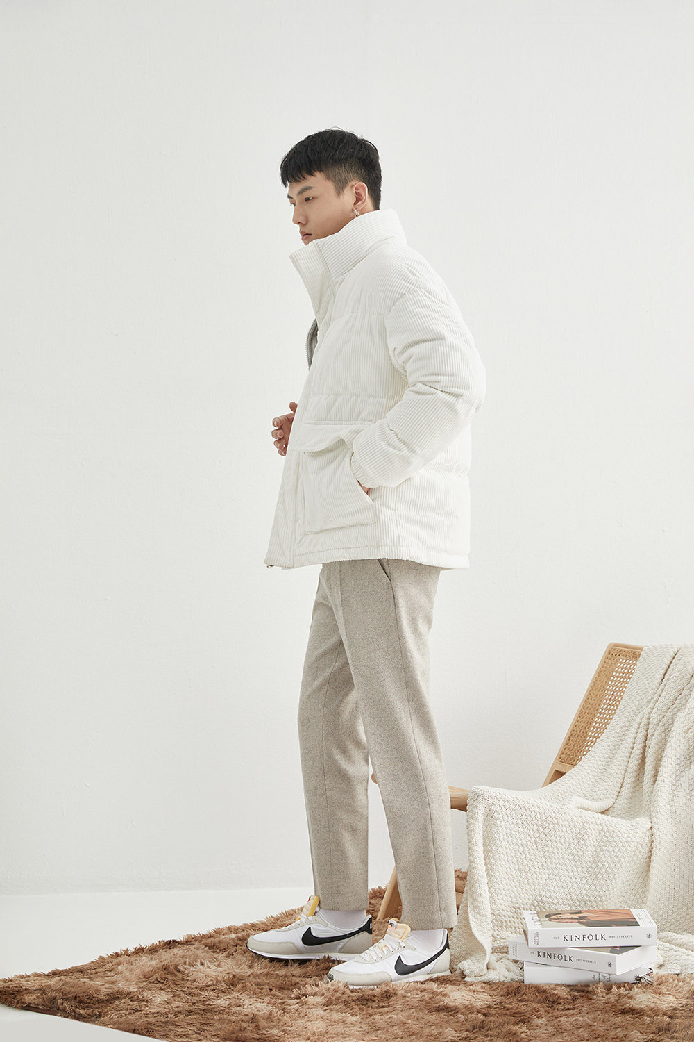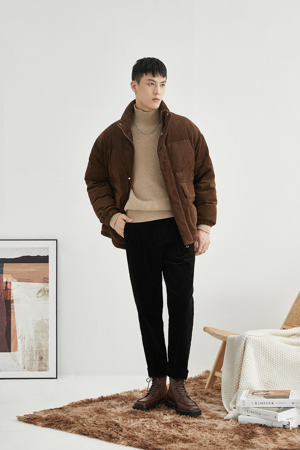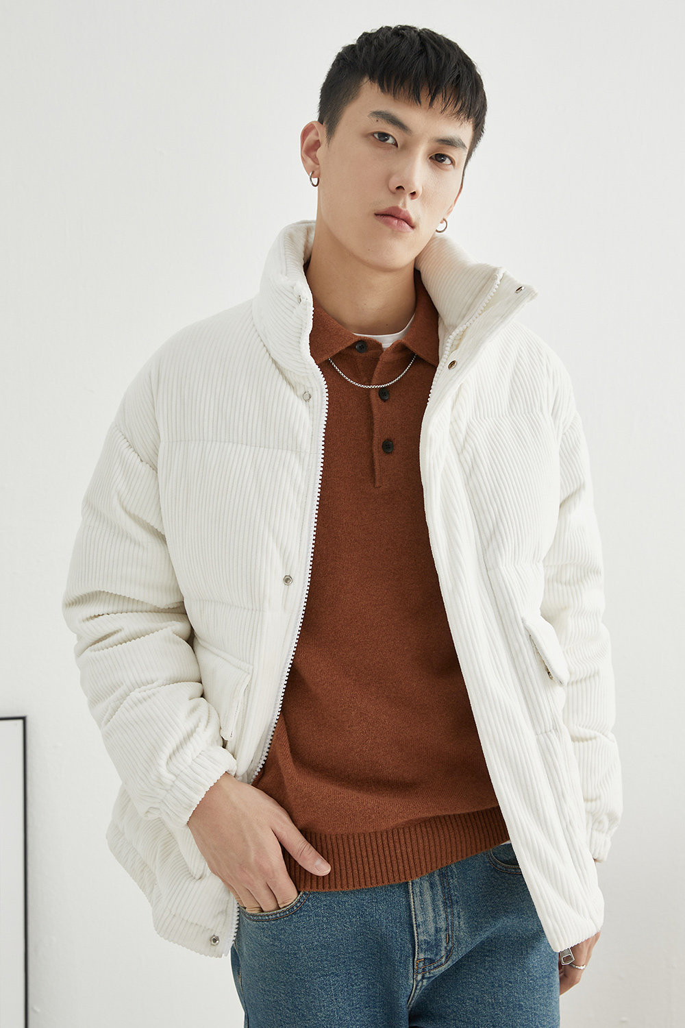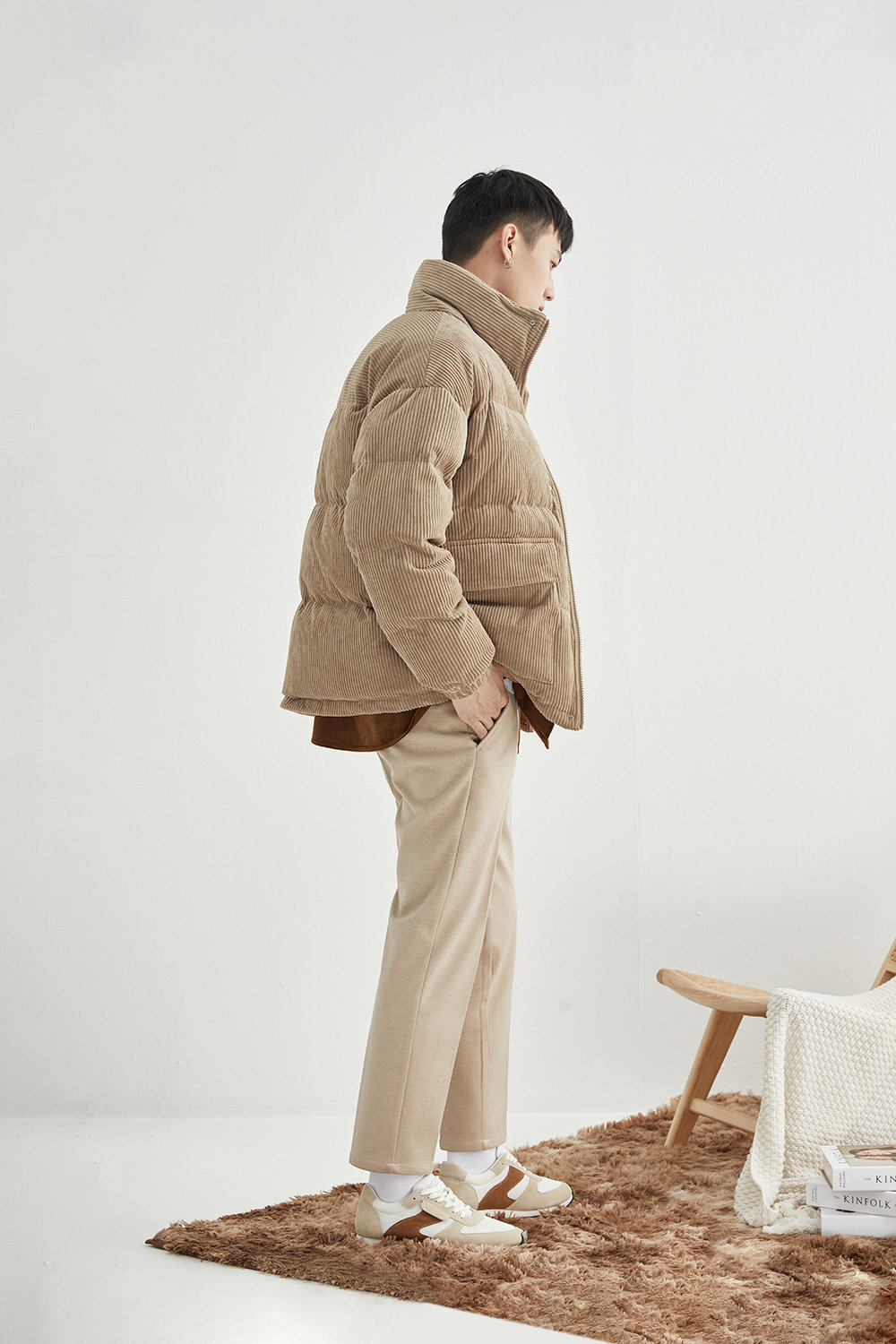 Вельветовая замшевая демисезонная короткая японская куртка с пухом, свободный крой