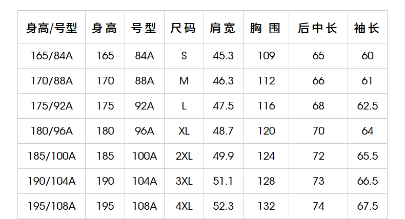 | Размер: | 165/84A, 170/88A, 175/92A, 180/96A, 185/100A, 190/104A, 195/108A |
