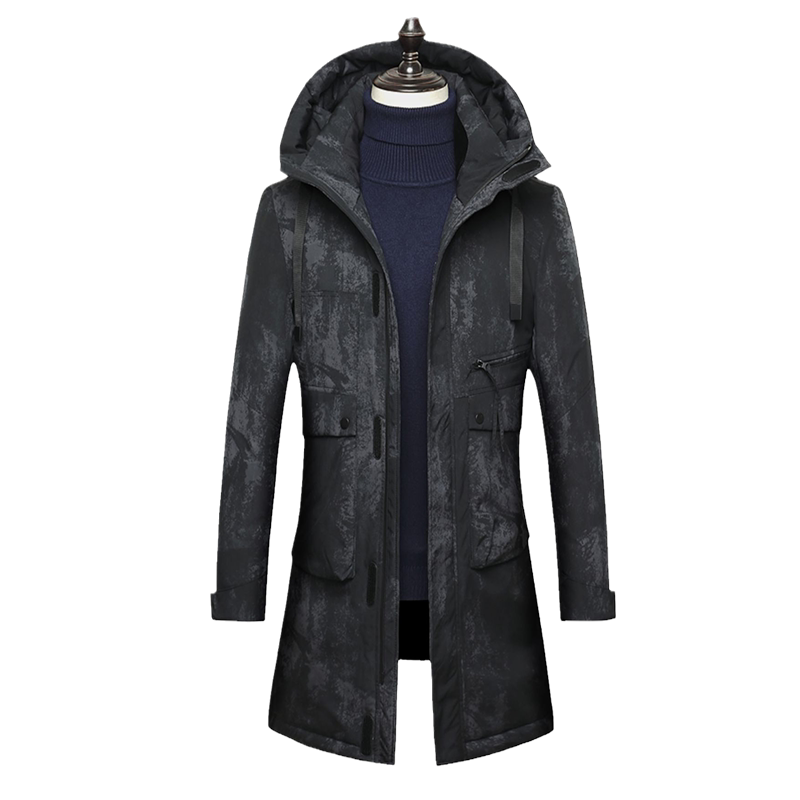 Бархатный демисезонный длинный пуховик для мальчиков, камуфляжная куртка с капюшоном, гусиный пух, 2021 года
