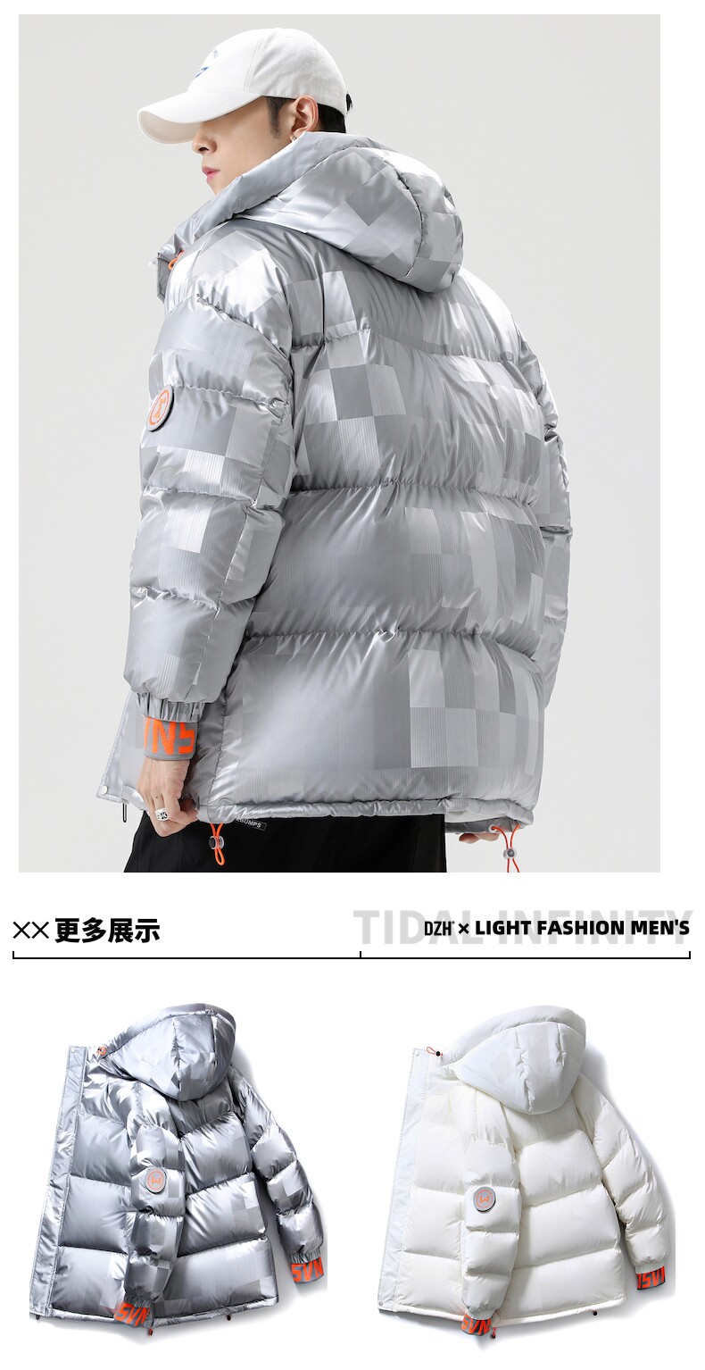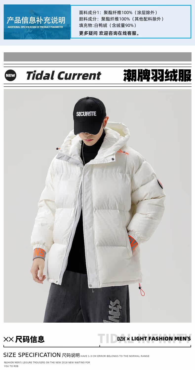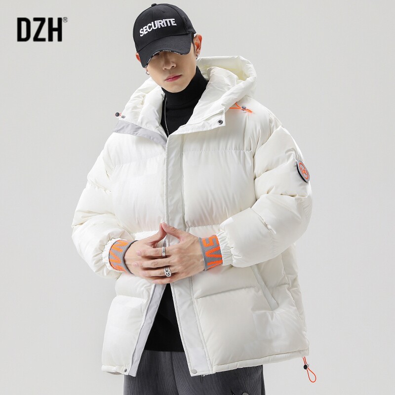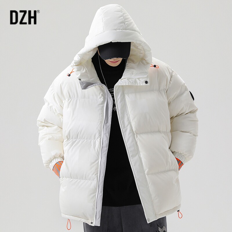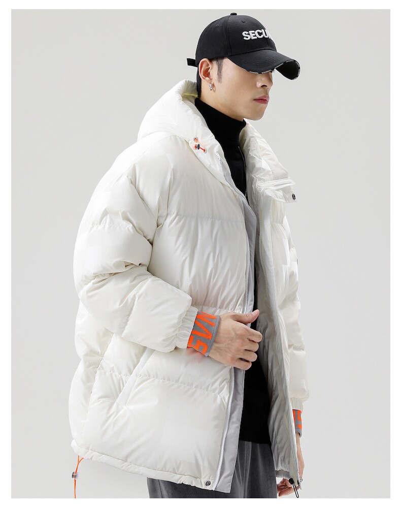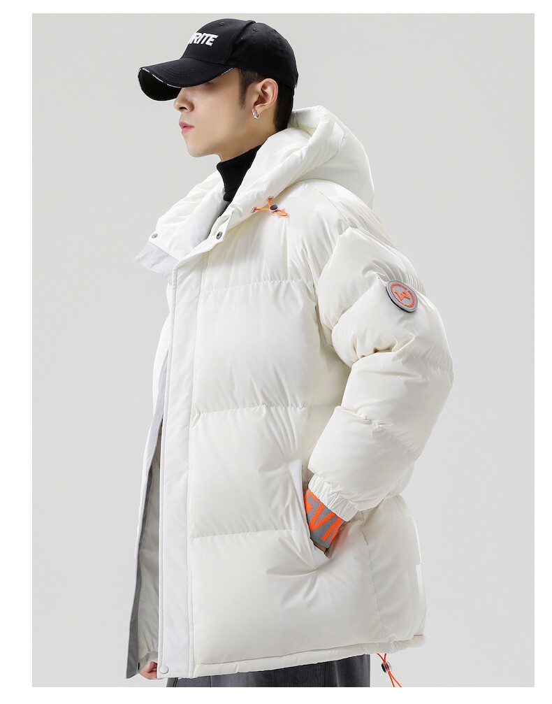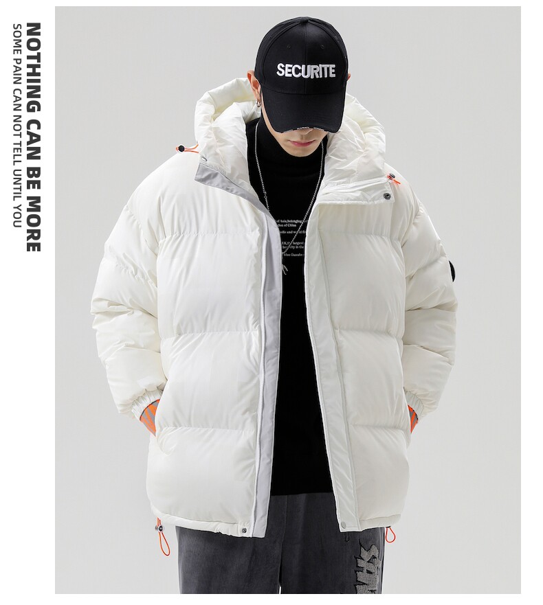 Белый пуховик, мужская куртка с пухом, свободный крой, 2021 года