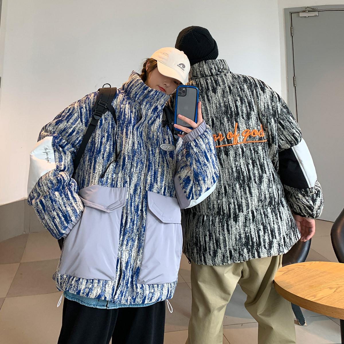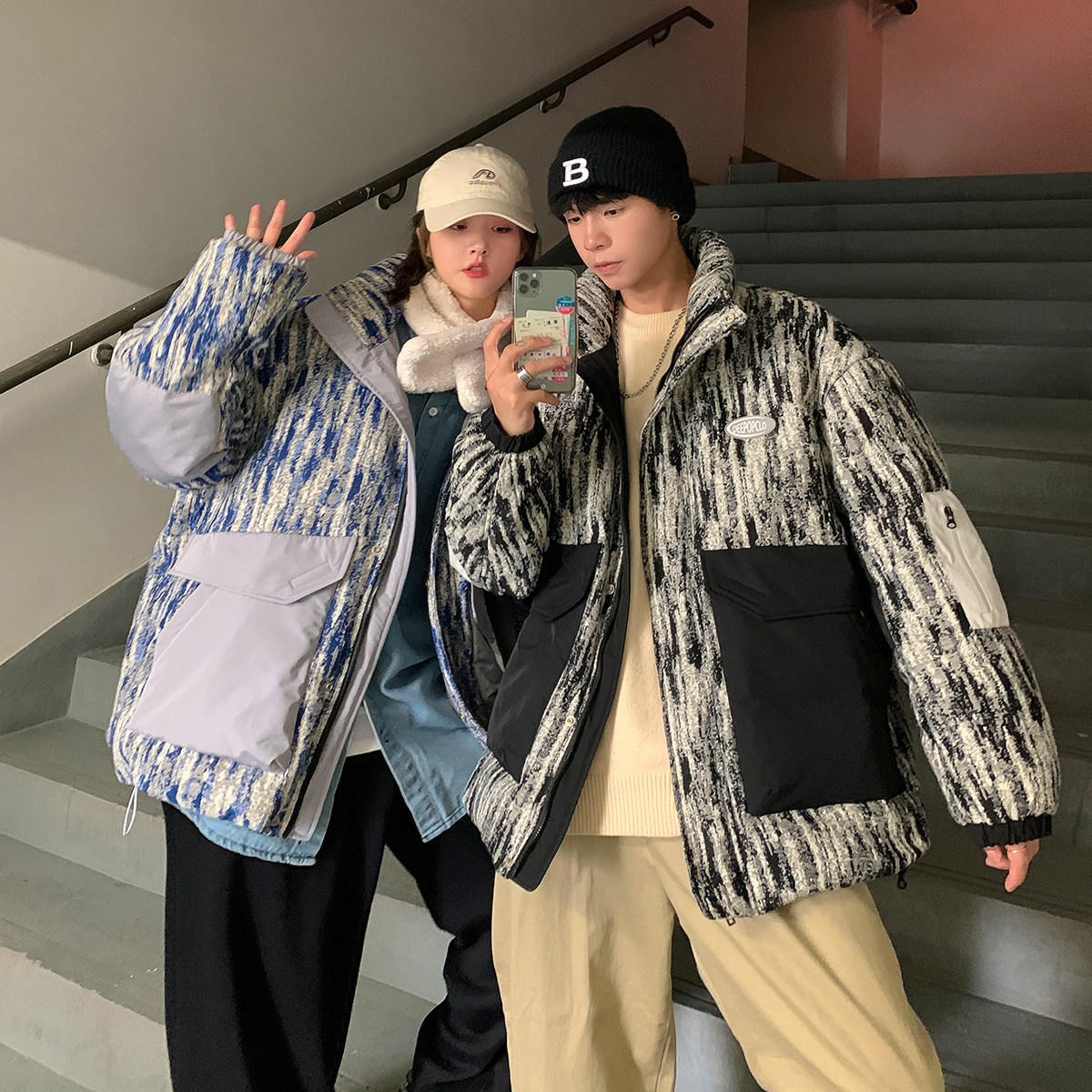 Камуфляжный ретро пуховик, демисезонная куртка, оверсайз, для влюбленных