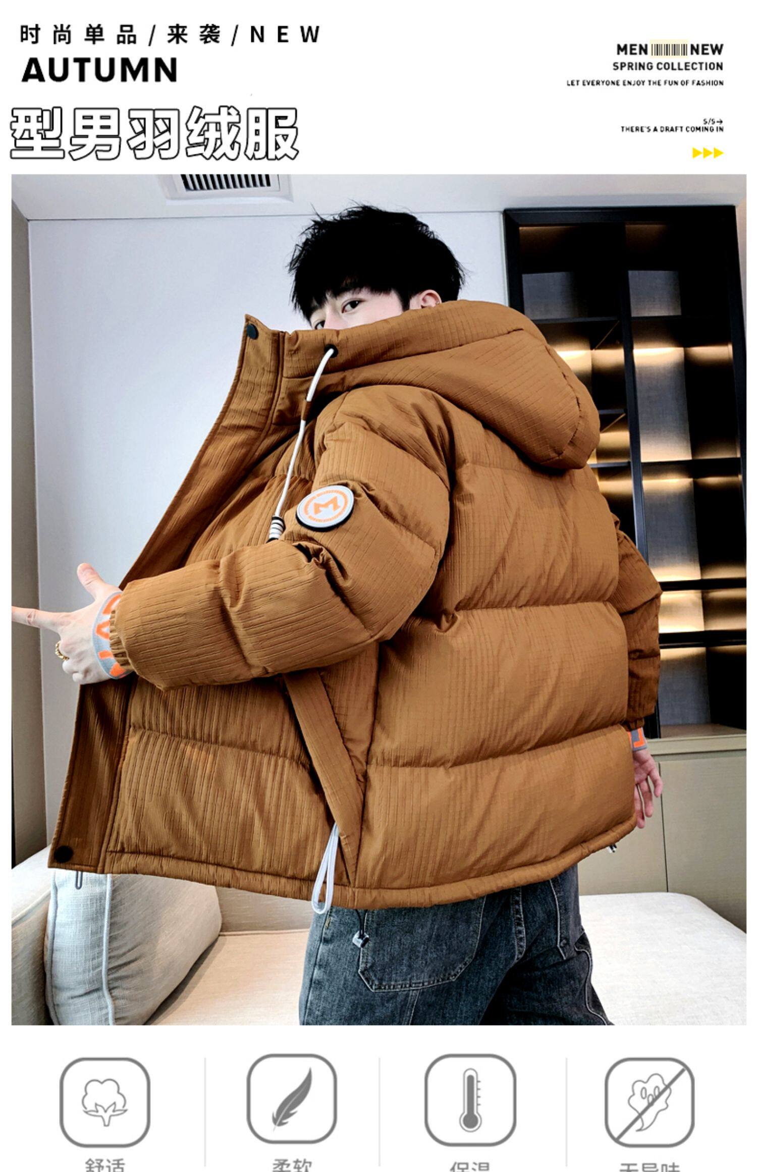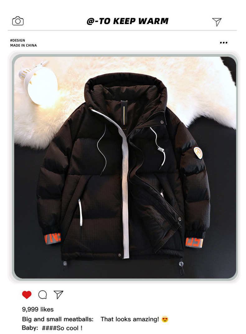 Пуховик, куртка, бархатная удерживающая тепло ветрозащитная толстовка с капюшоном, увеличенная толщина, утиный пух, в корейском стиле