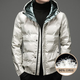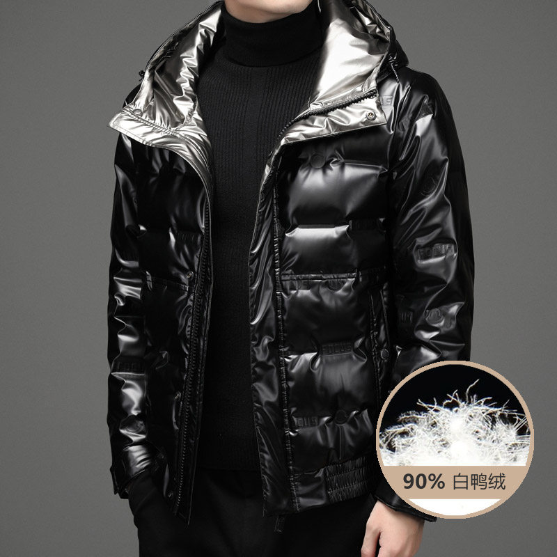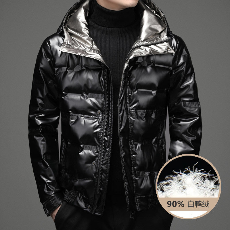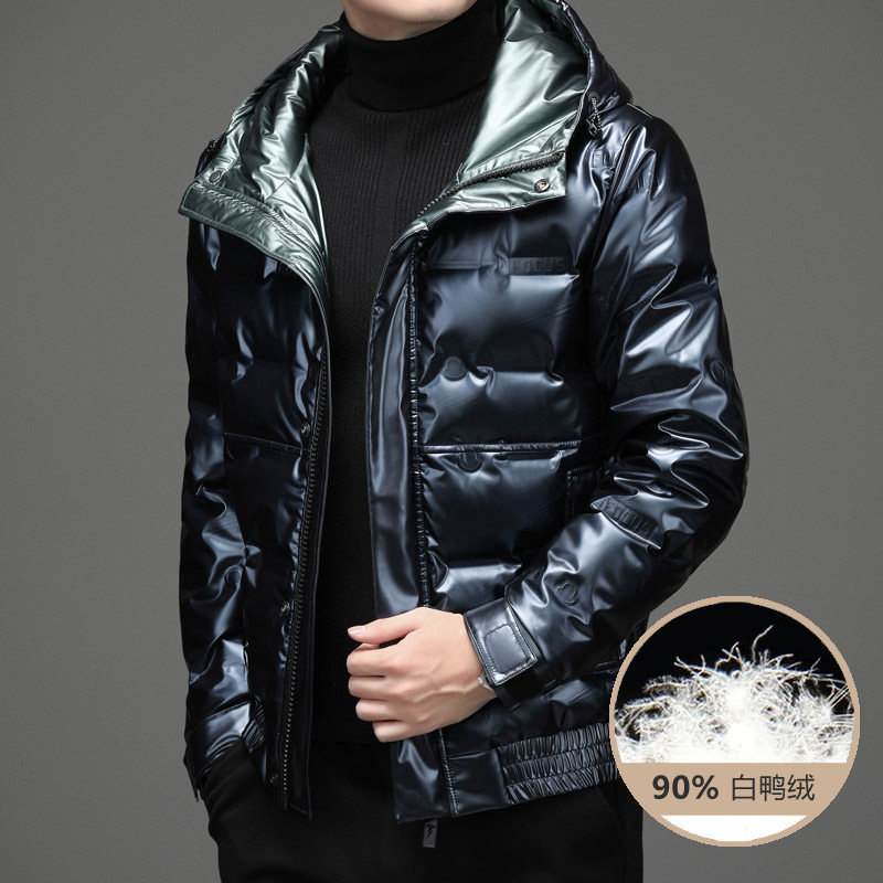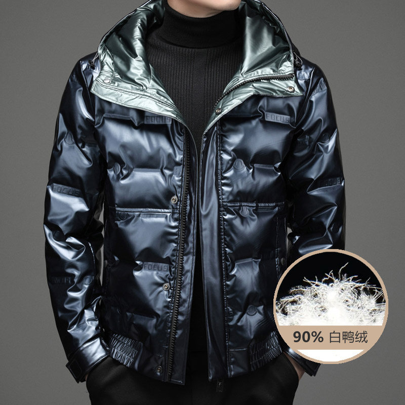 Глянцевый короткий демисезонный пуховик, бархатная утепленная толстовка с капюшоном, коллекция 2021, утиный пух