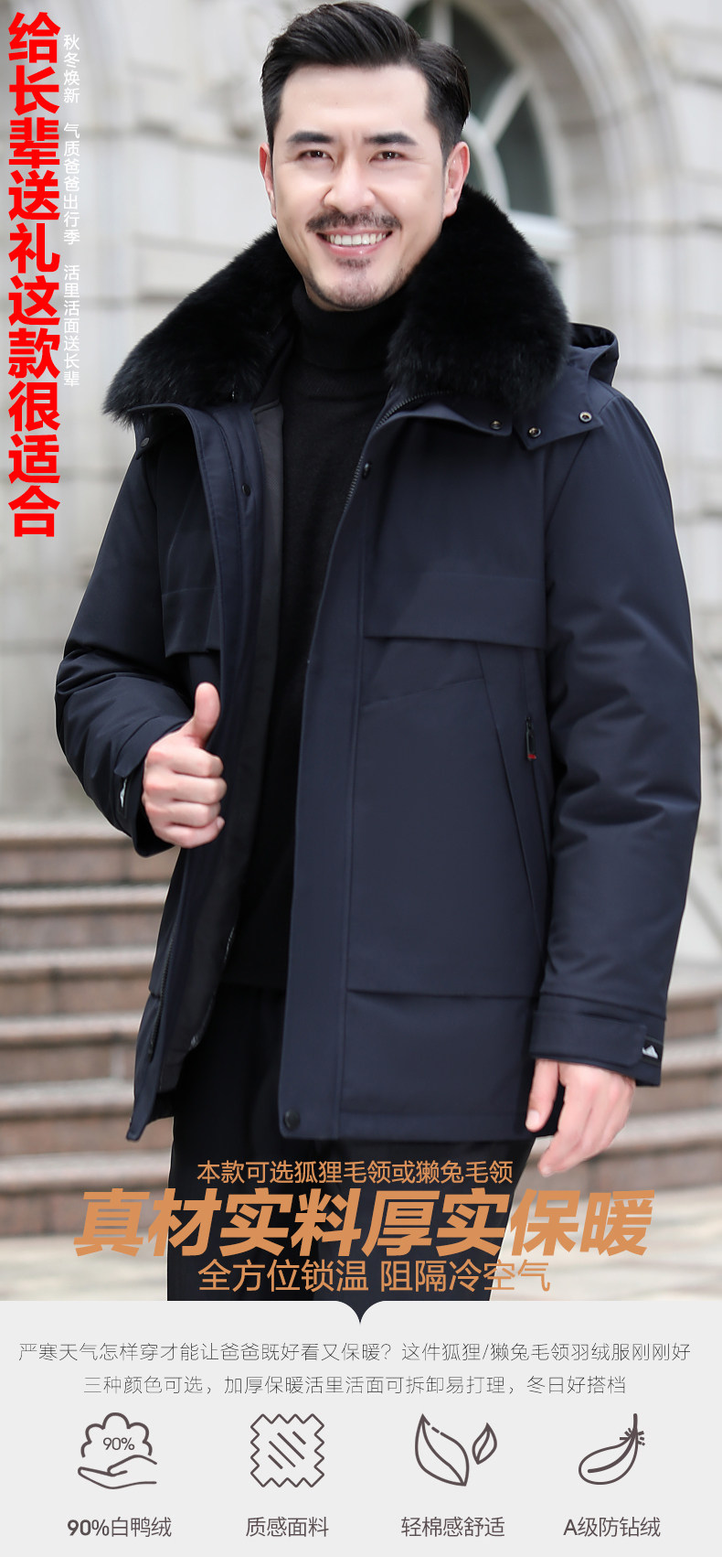 恒源祥 Короткий пуховик, куртка, для среднего возраста, увеличенная толщина