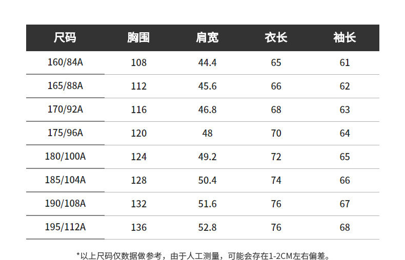 | Размер: | 160/84A/XS, 165/88A/S, 170/92A/M, 175/96A/L, 180/100A/XL, 185/104A/XXL, 190/108A/XXXL, 195/112A/XXXXL |