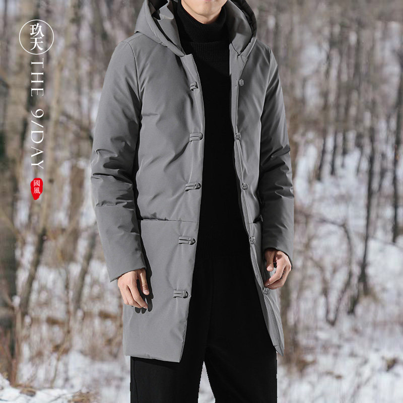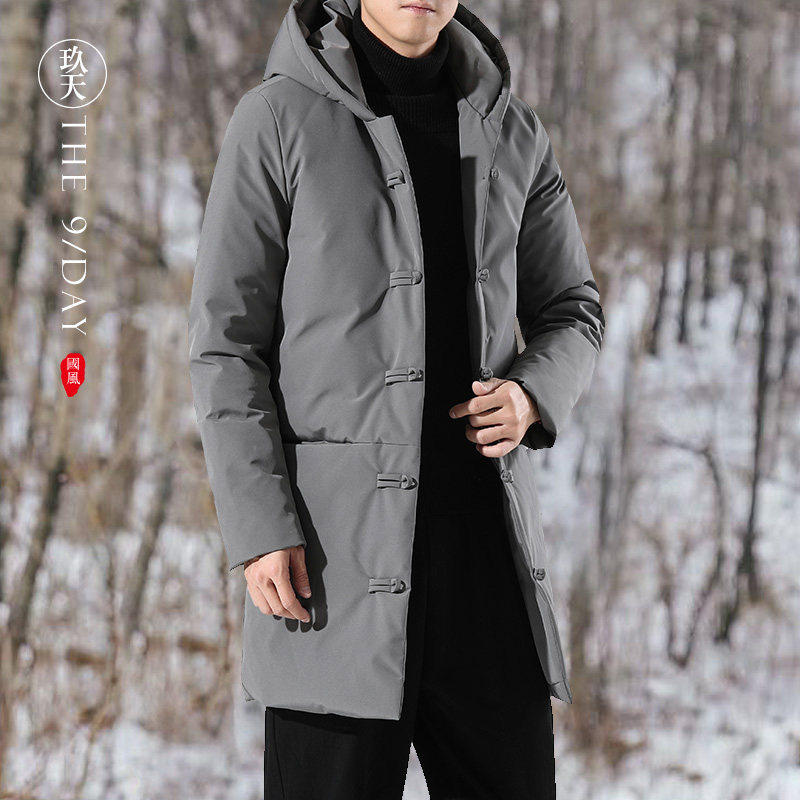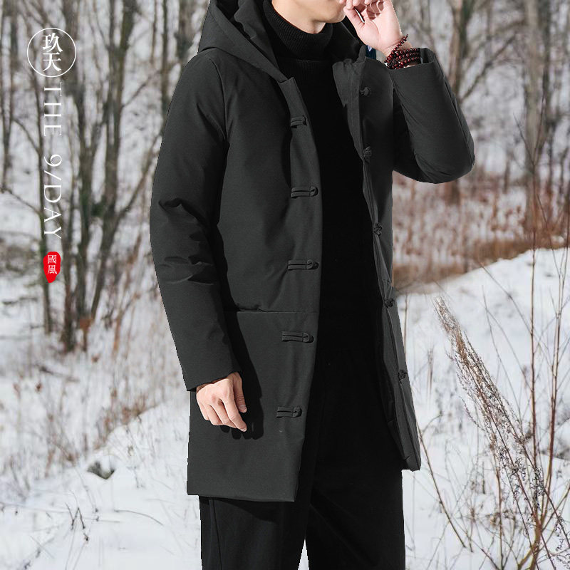 Демисезонный длинный пуховик, куртка, китайский стиль, увеличенная толщина