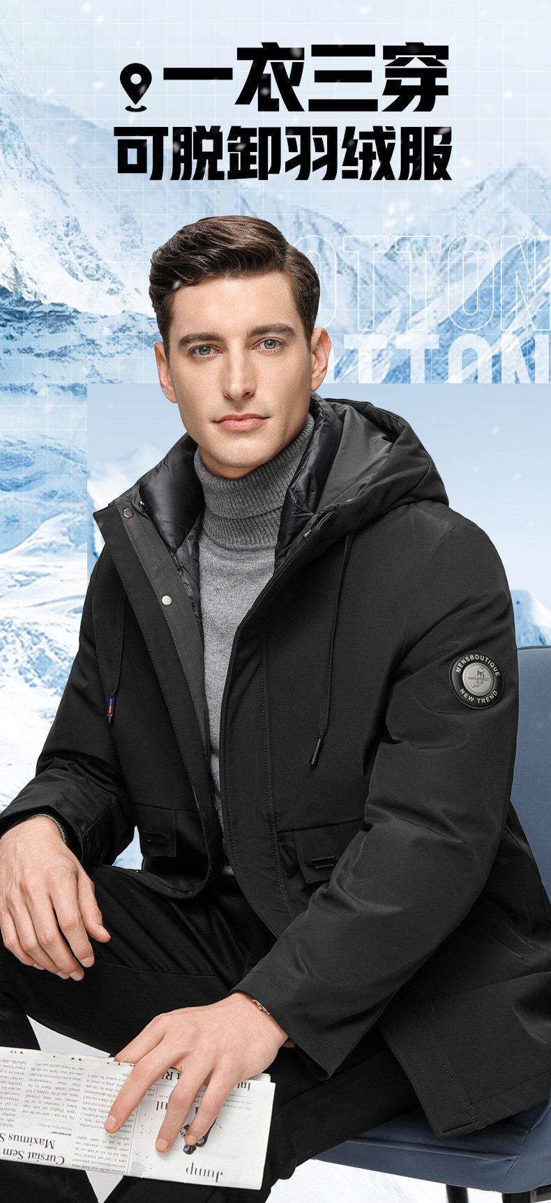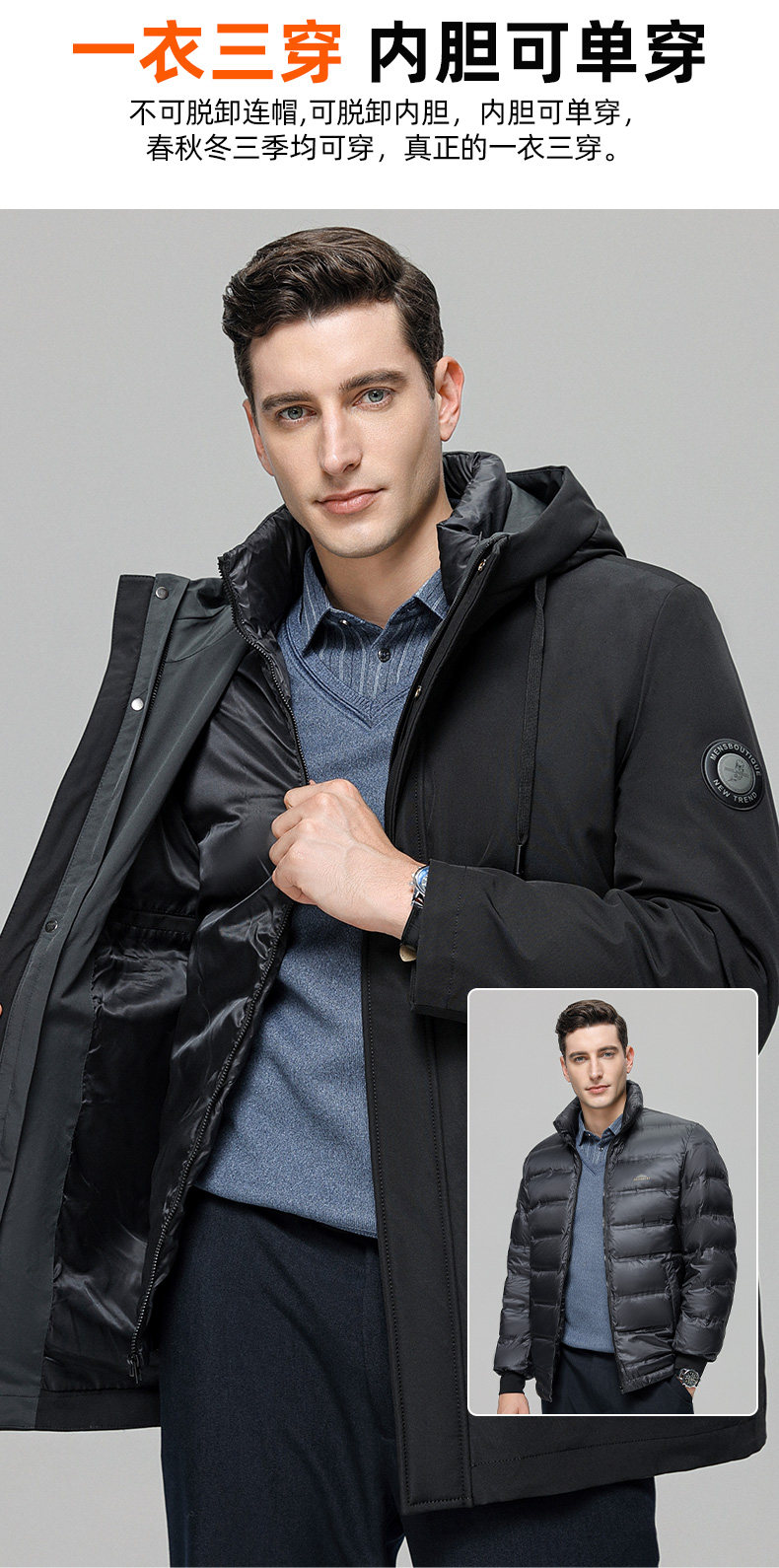 Съёмный вкладыш с пухом, пуховик, зимняя мужская куртка