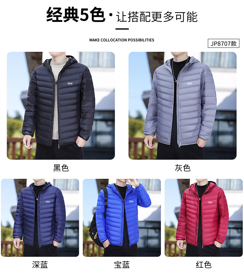 Джип, мужской легкий и тонкий удерживающий тепло пуховик, зимняя бархатная весенняя куртка, официальный флагманский магазин, новая коллекция, утиный пух