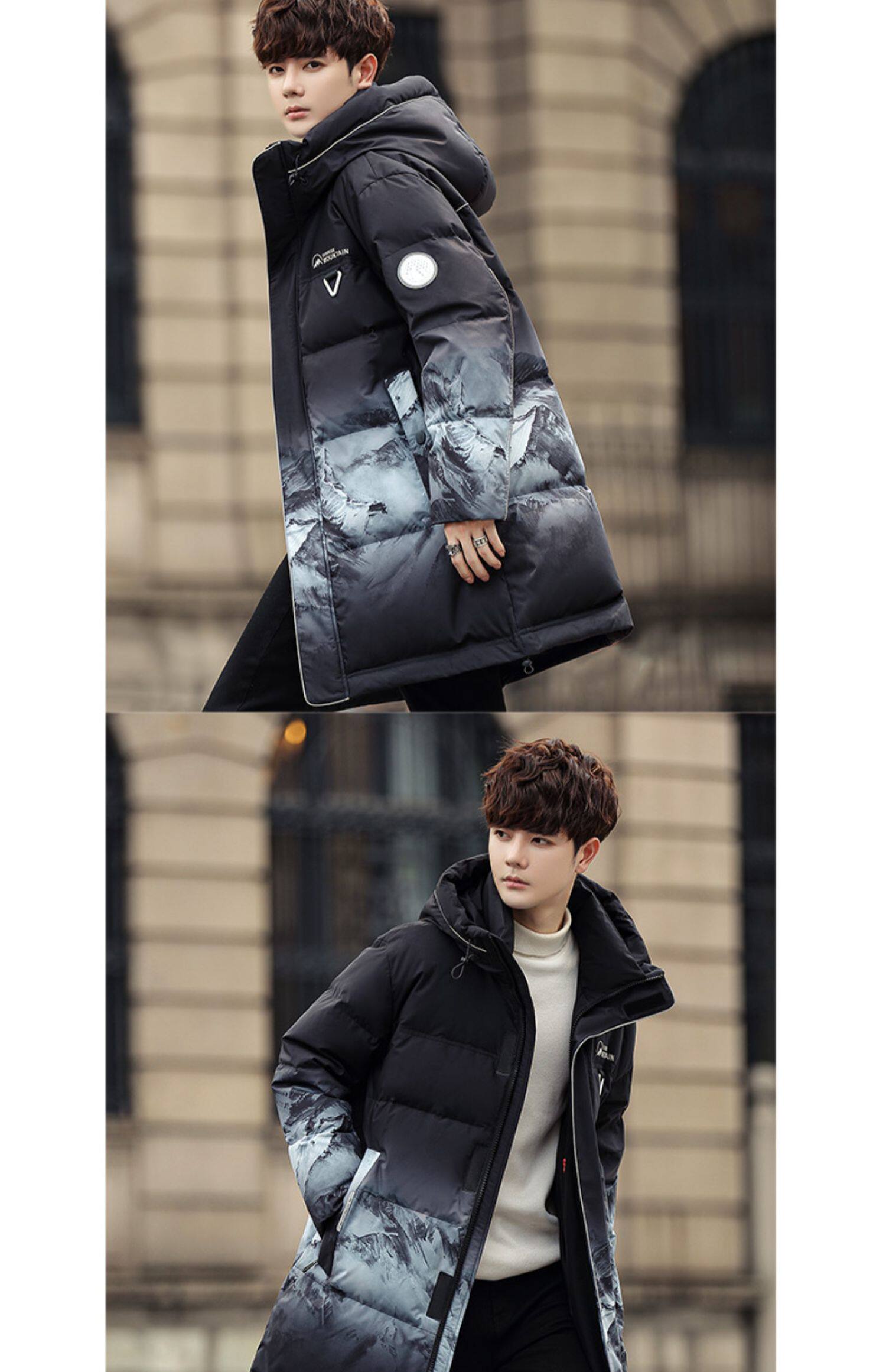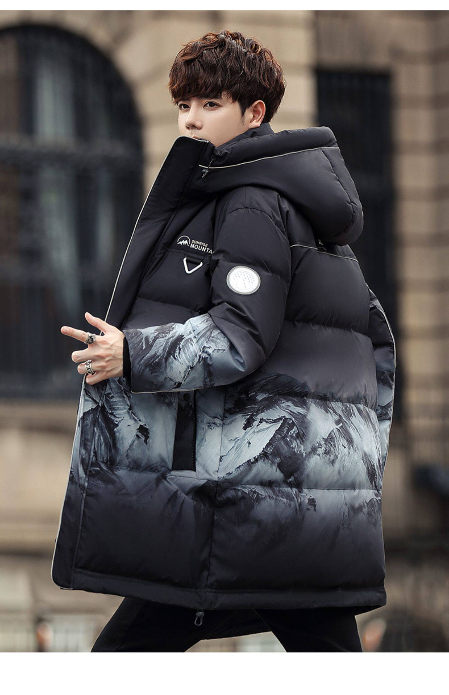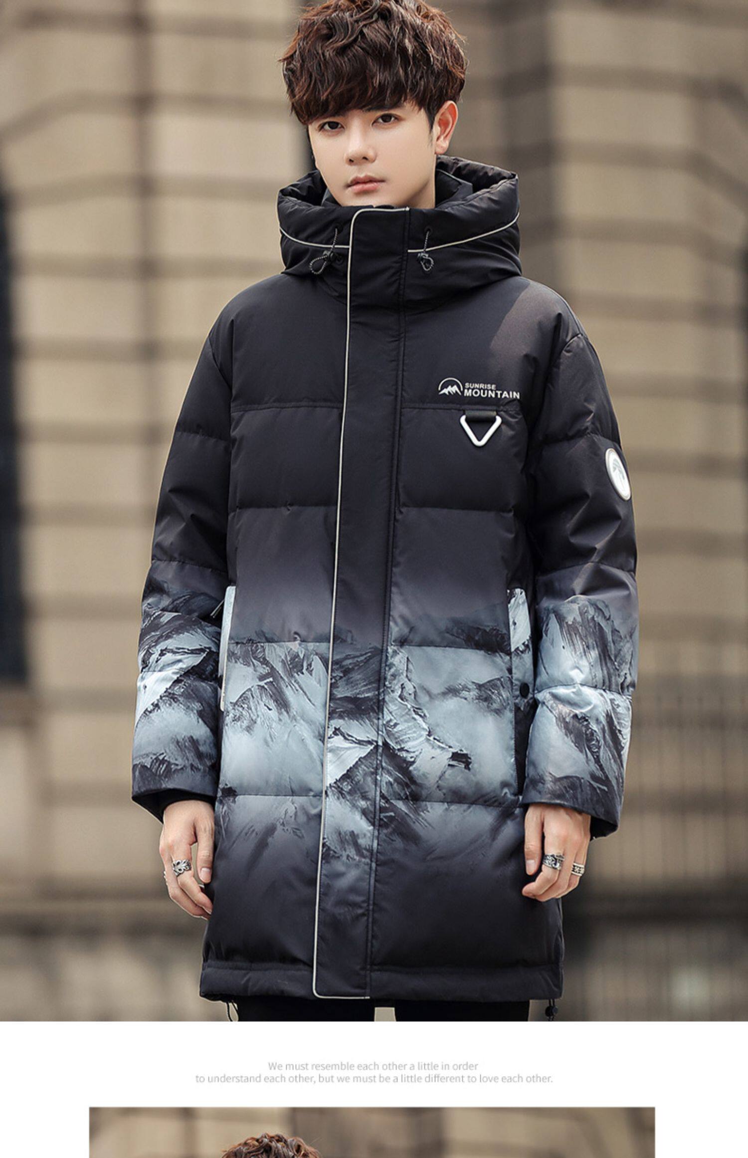 Пуховик, осенняя длинная толстовка с капюшоном, модная куртка, 2023 года, средней длины, градиент