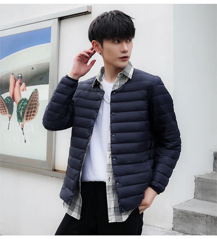 Пуховик с круглым воротником, удерживающий тепло сверхлегкий вкладыш с пухом, ультратонкая тонкая куртка, V-образный вырез, набивка пером